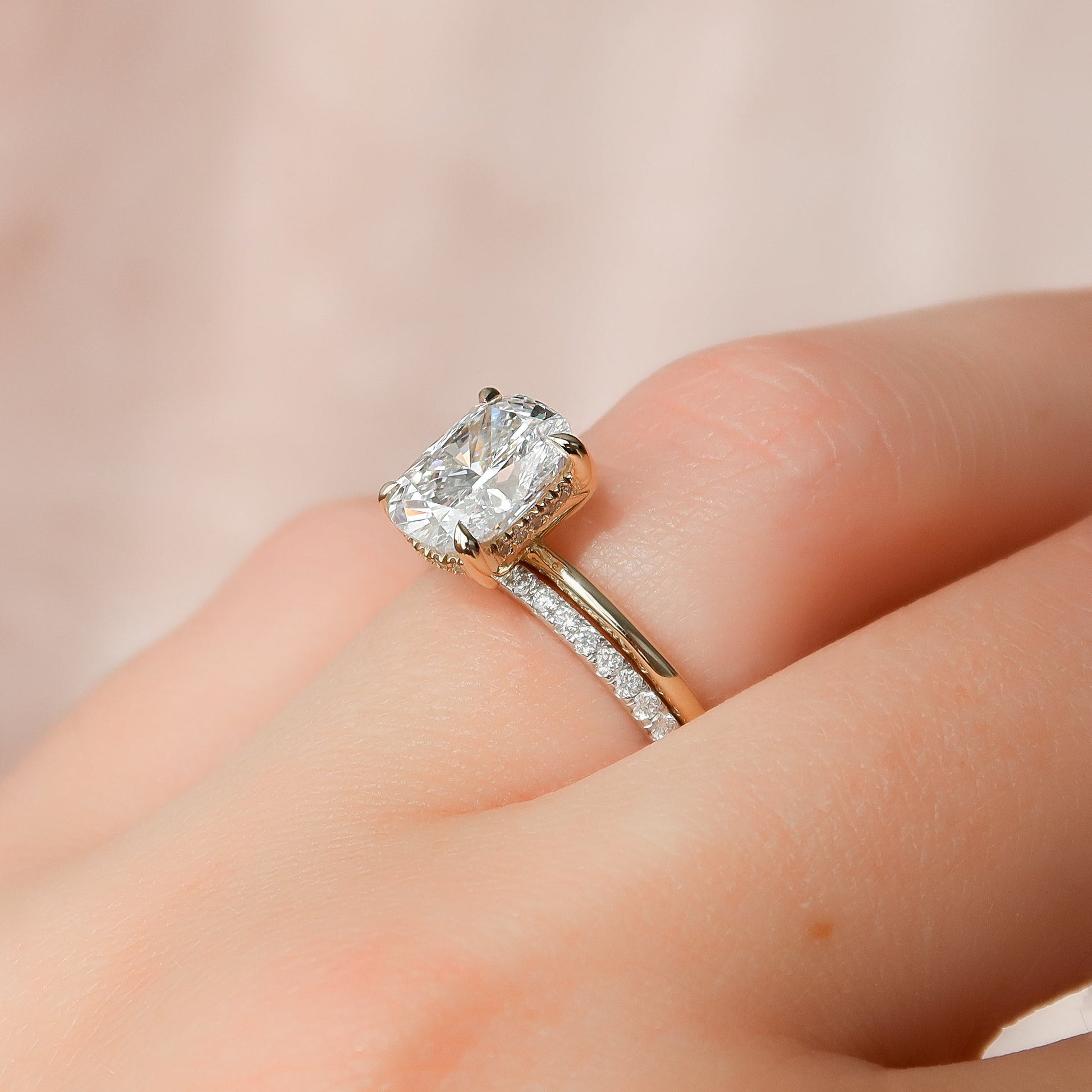 2.0 - 4.0 CT Elongated Cushion Cut CVD Diamond Hidden Halo Engagement Ring