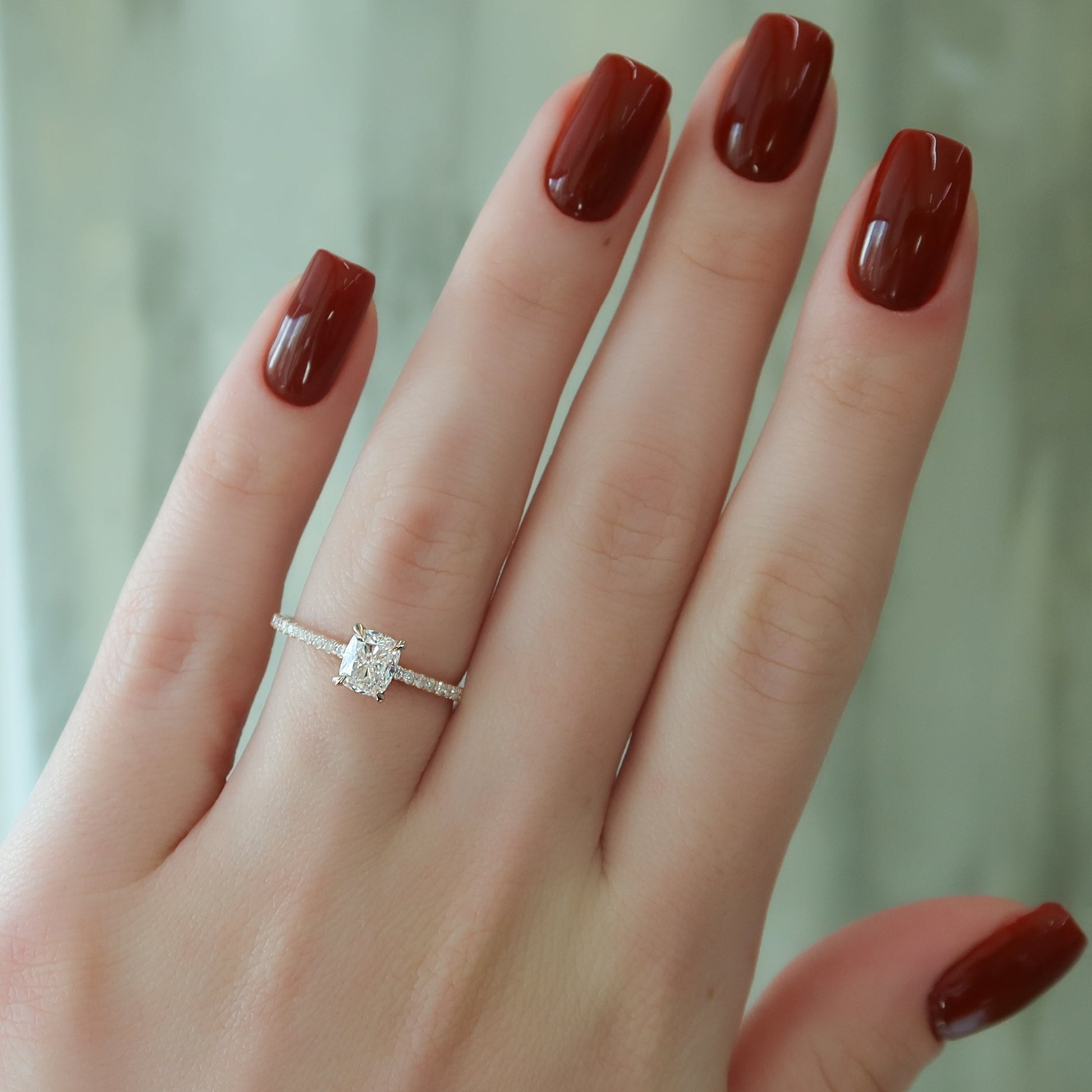 ✦ The Ring Shown in the Picture Holds a Beautiful Elongated Cushion Cut Lab Grown Diamond.