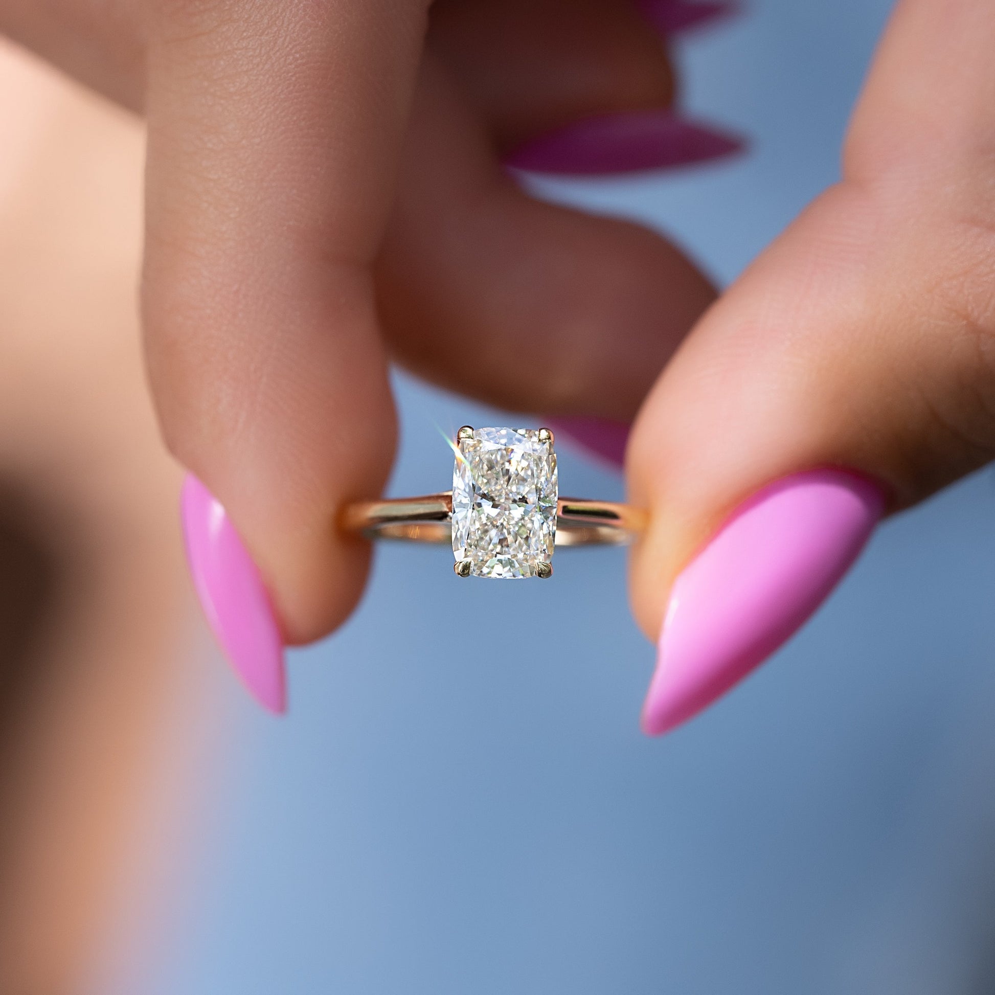 2.0 - 4.0 CT Elongated Cushion Cut CVD Diamond Solitaire Engagement Ring