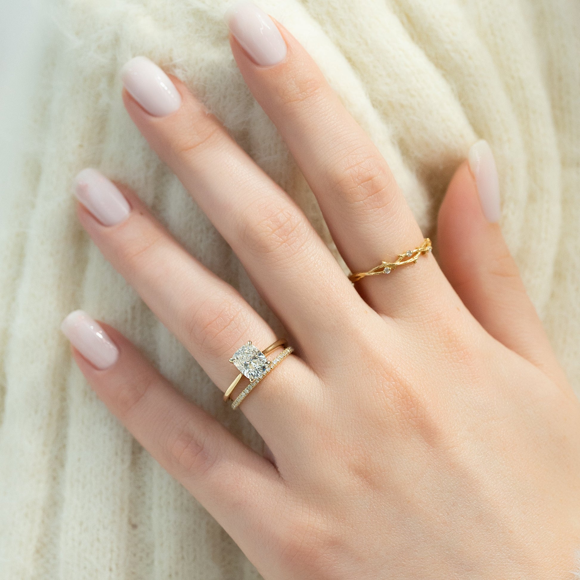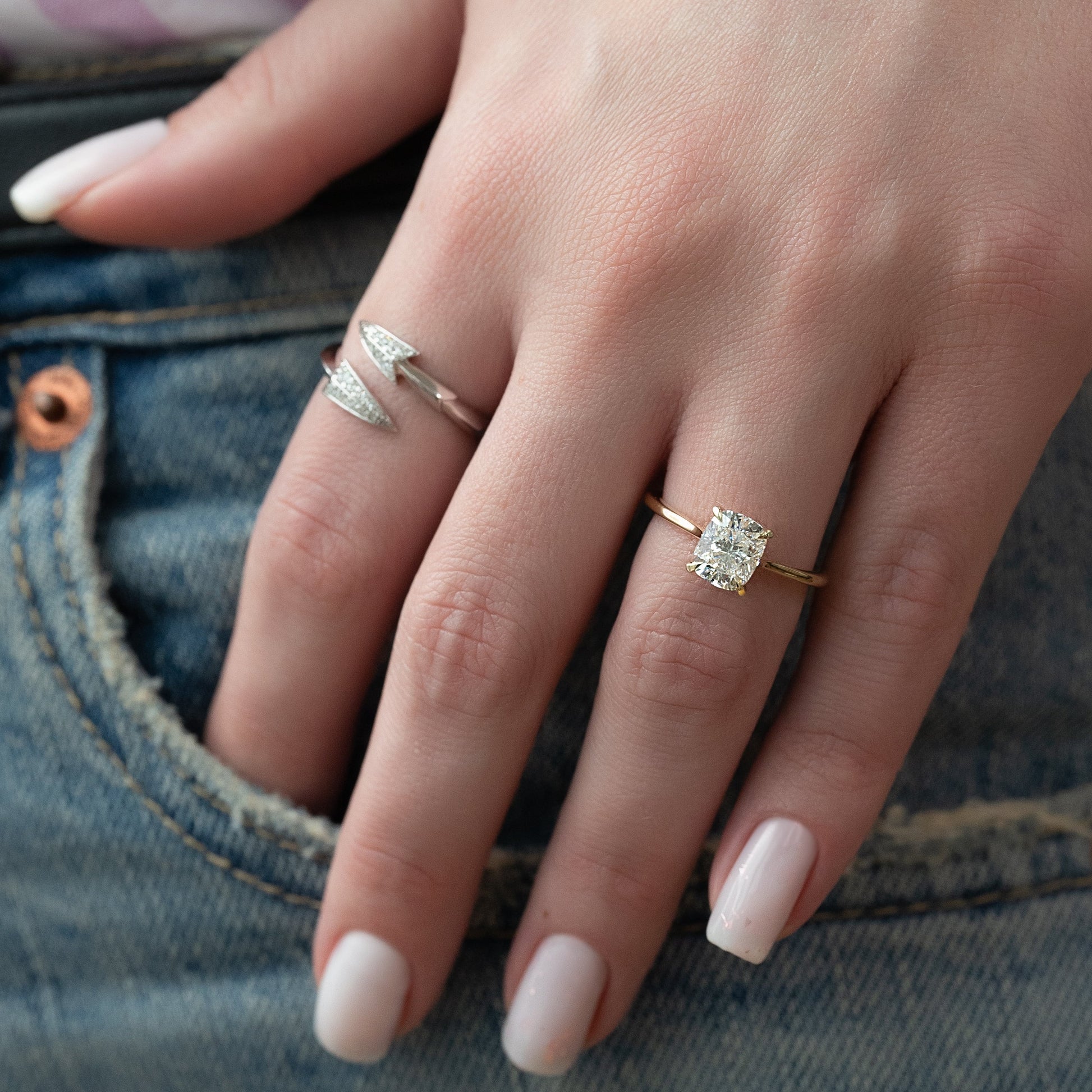 ✦ The Ring Shown in the Picture Holds a Beautiful Elongated Cushion Cut Lab Grown Diamond.