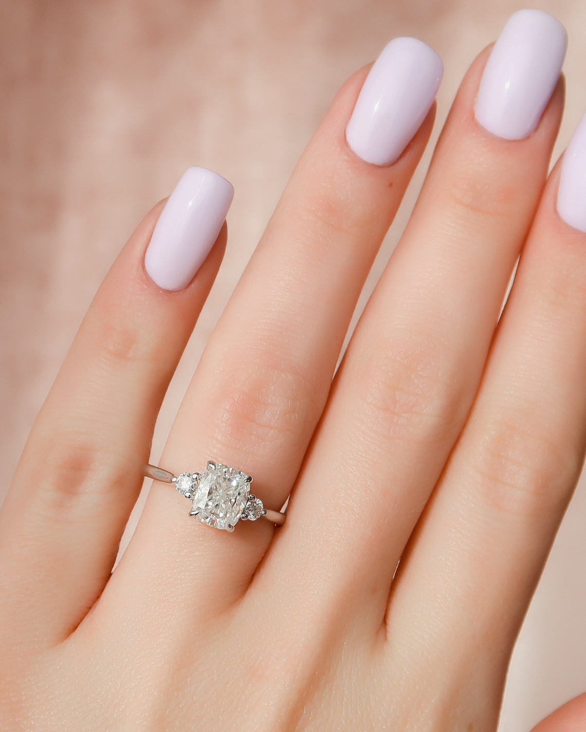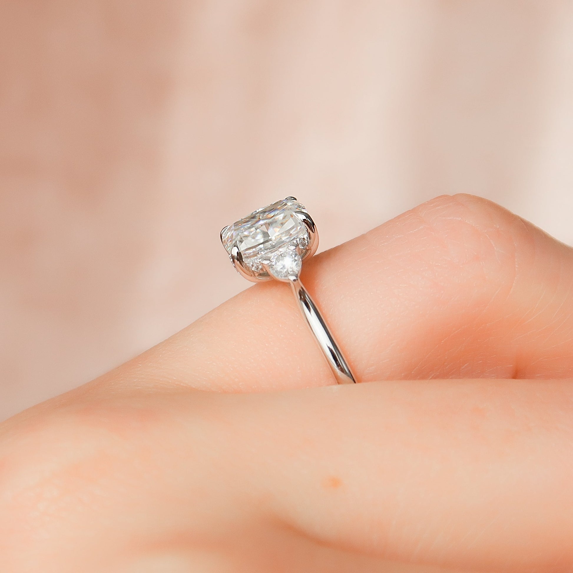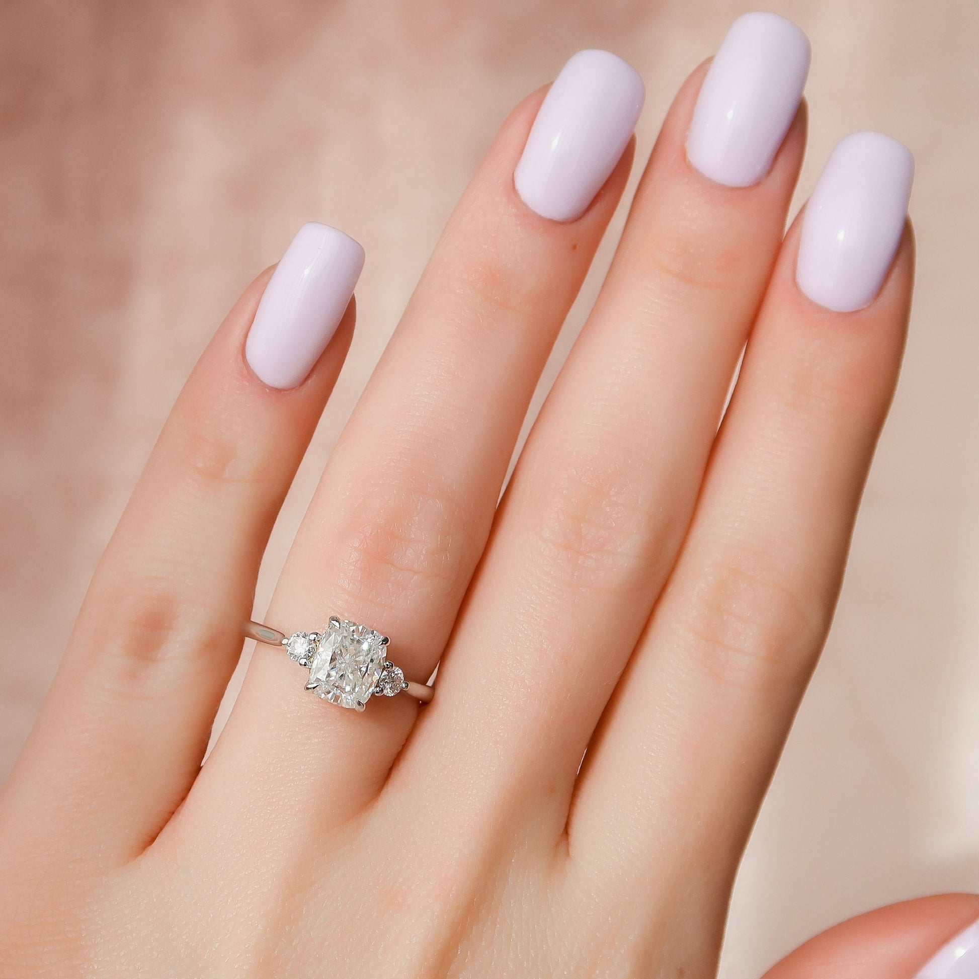 2.0 - 4.0 CT Elongated Cushion Cut CVD Diamond Three Stone Style Engagement Ring