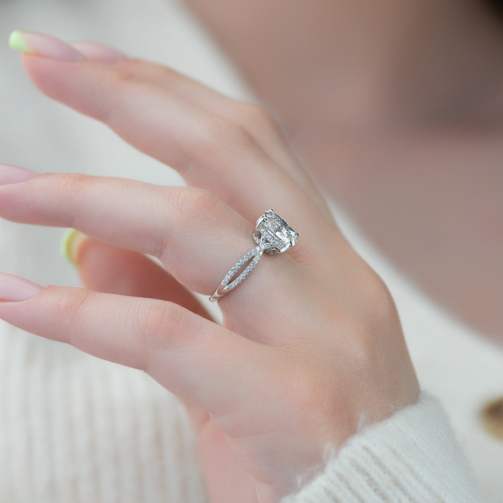 2.0 - 4.0 CT Elongated Cushion Cut CVD Diamond Twisted Pave Style Engagement Ring