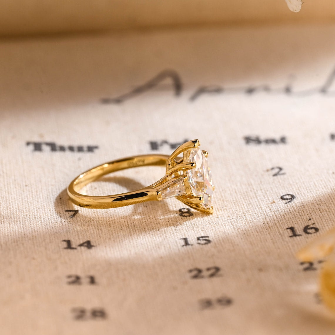 2.0 - 4.0 CT Marquise CVD Diamond Three Stone Style Engagement Ring