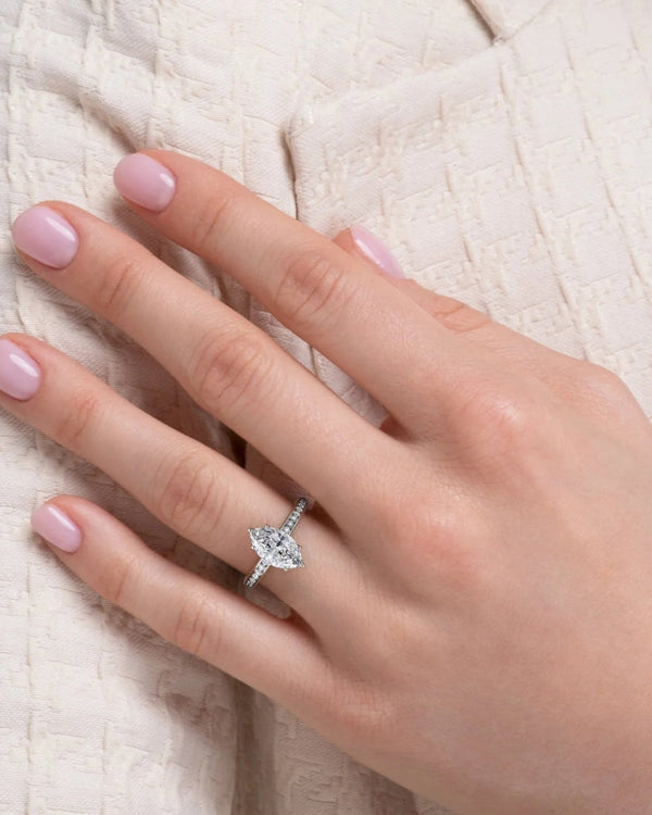 2.0 - 4.0 CT Marquise shaped CVD Diamond Channel-set Pave Engagement Ring
