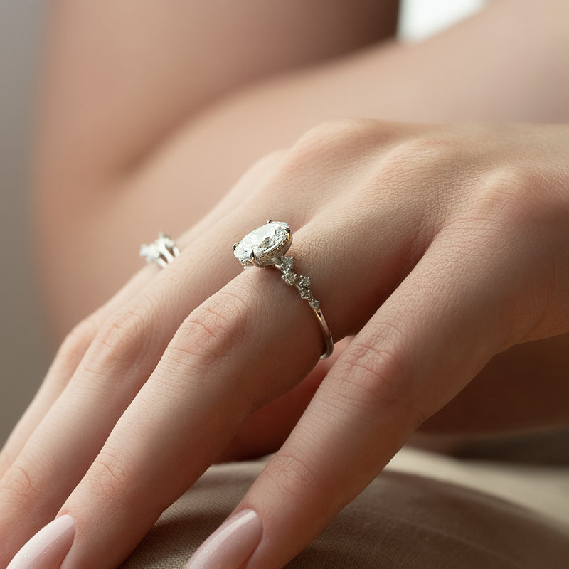 2.0 -4.0 CT Oval Cut CVD Diamond Hidden Halo & Pave Engagement Ring
