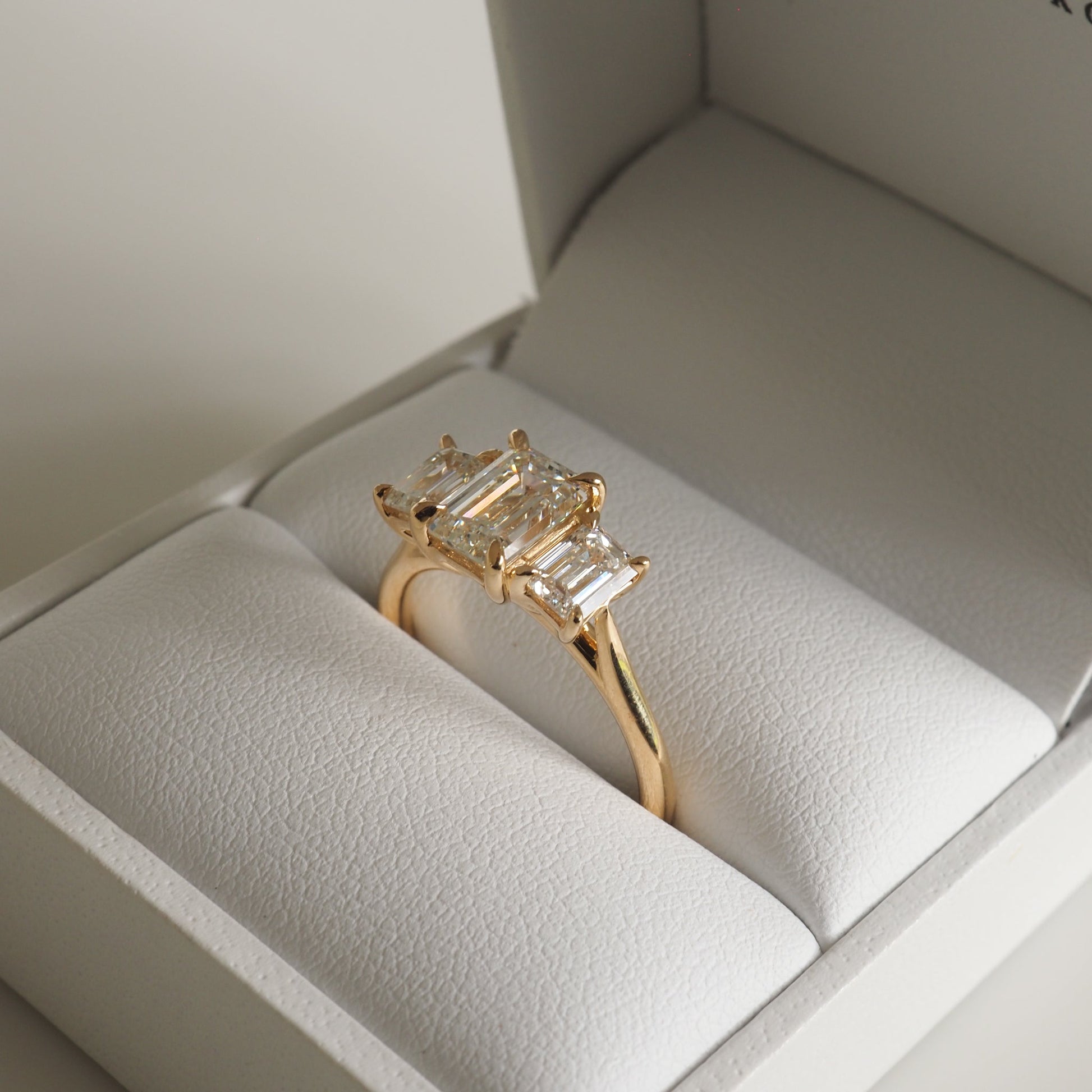 2.05 Carats Emerald Shaped CVD Diamond Three Stone Style Engagement Ring