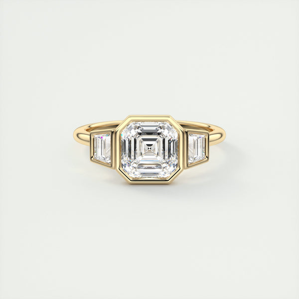 2.0CT Asscher Cut Moissanite Bezel 3 Stone Engagement Ring