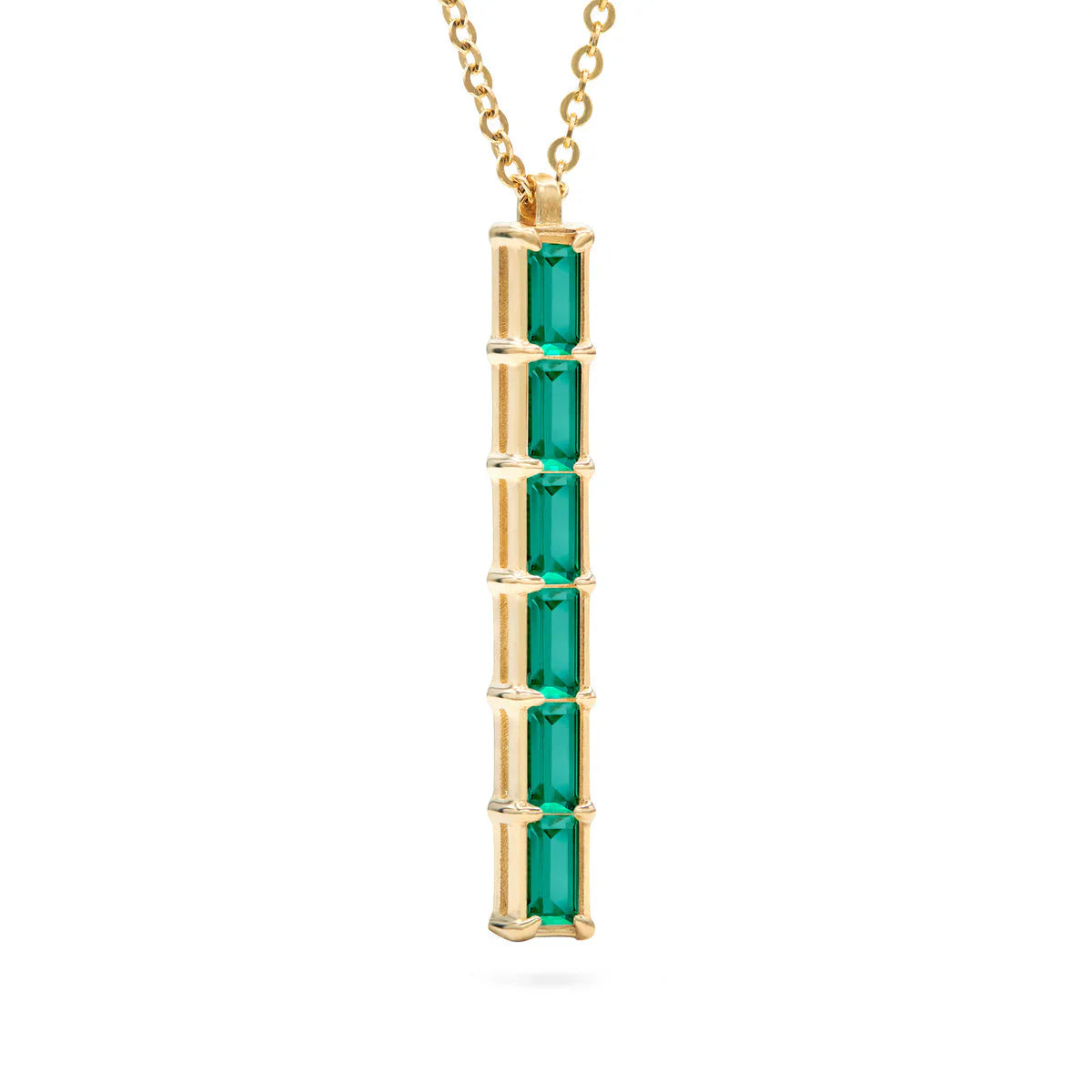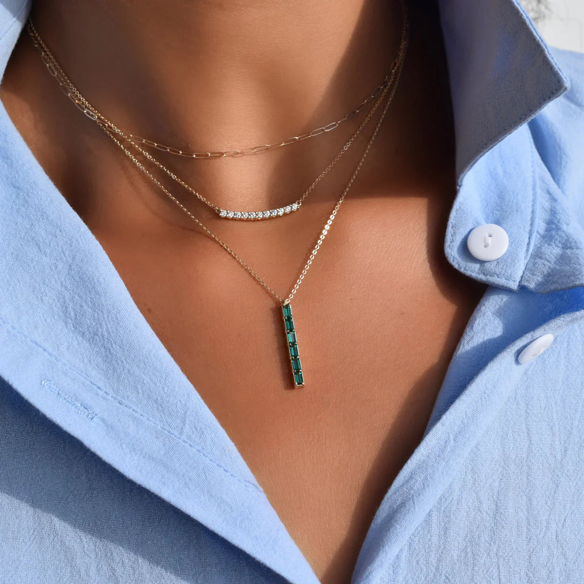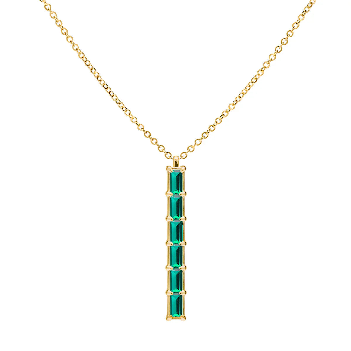2.0CT Baguette Emerald Diamond May Birthstone Necklace