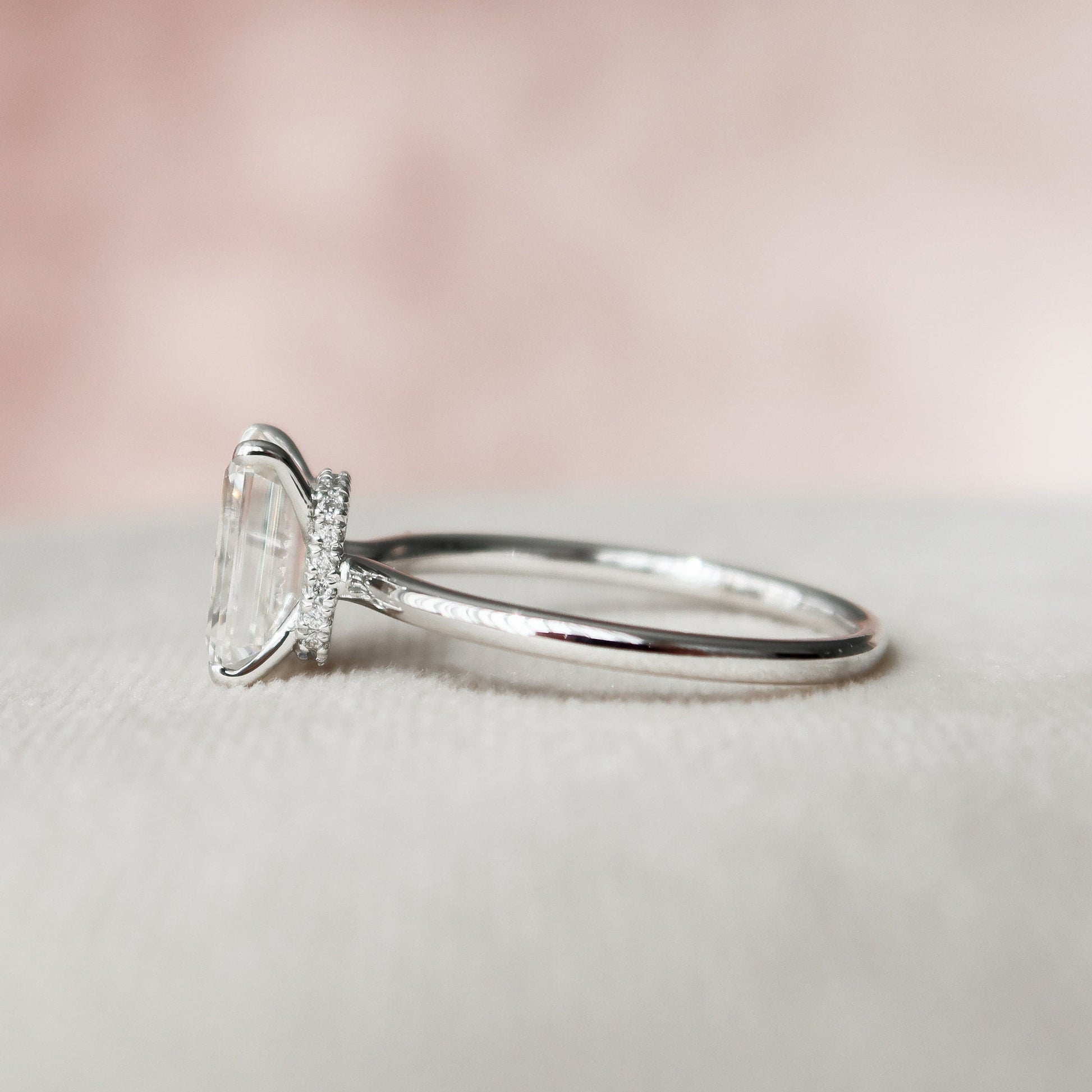 2.0CT Emerald Moissanite Solitaire Engagement Ring With Hidden Halo Setting