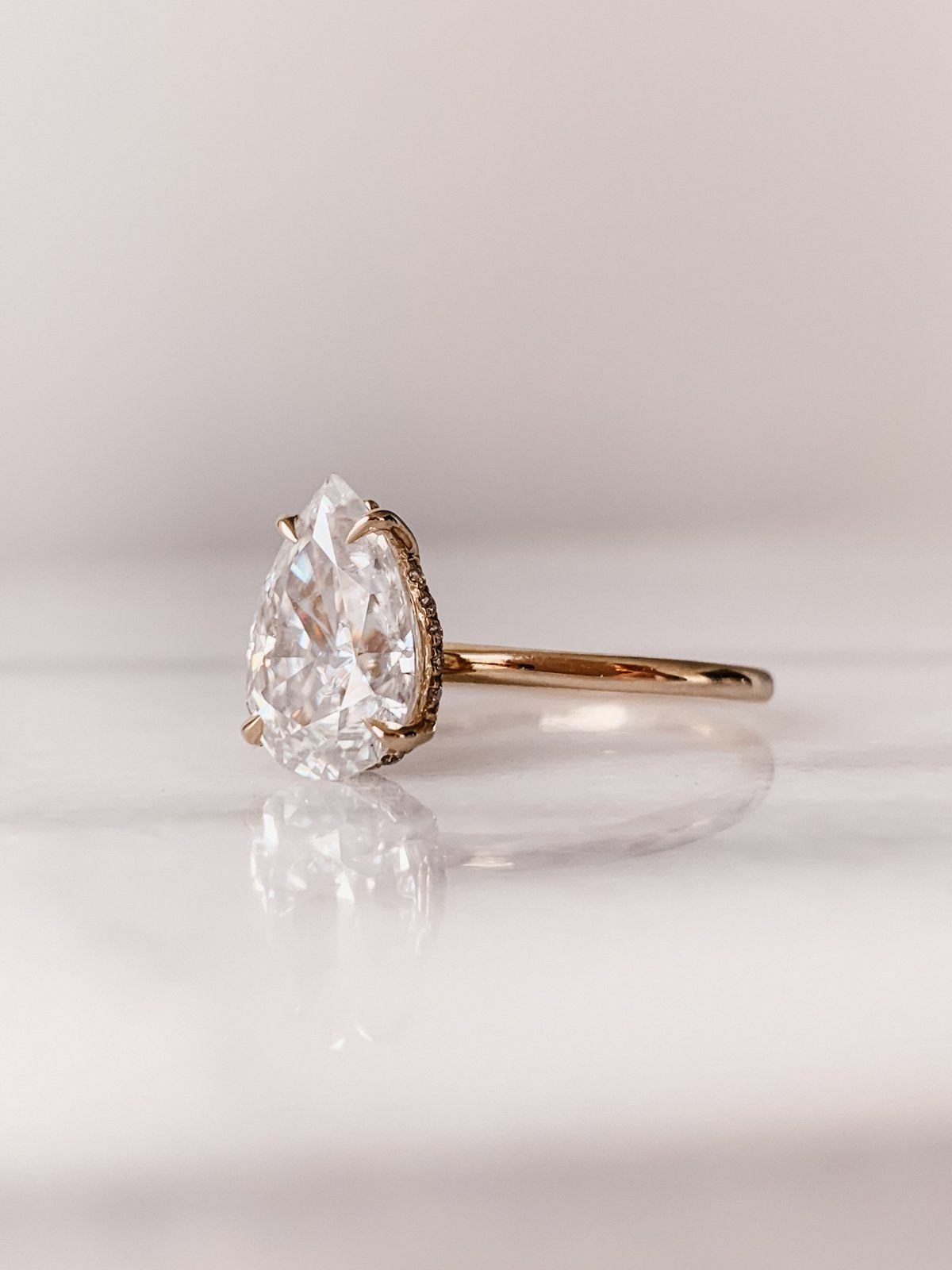 2.0CT Pear Cut Moissanite Solitaire 4 Prong Engagement Ring