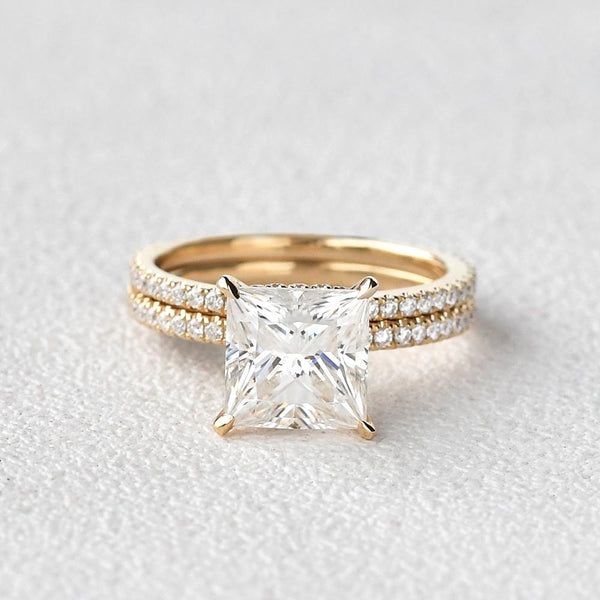 2.0CT Princess Cut Moissanite Solitaire Bridal Ring Set