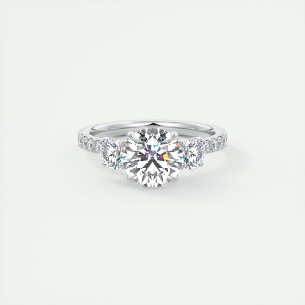 2.0CT Round Moissanite 3 Stones Pave Setting Engagement Ring