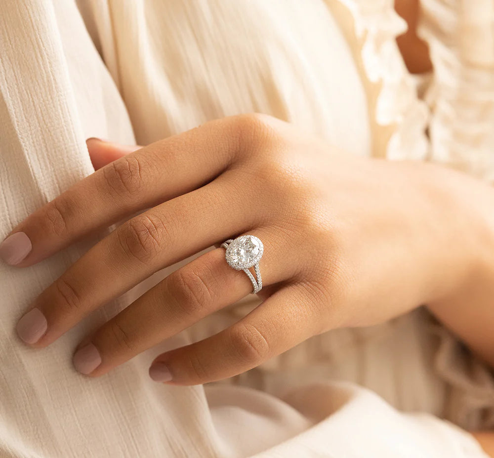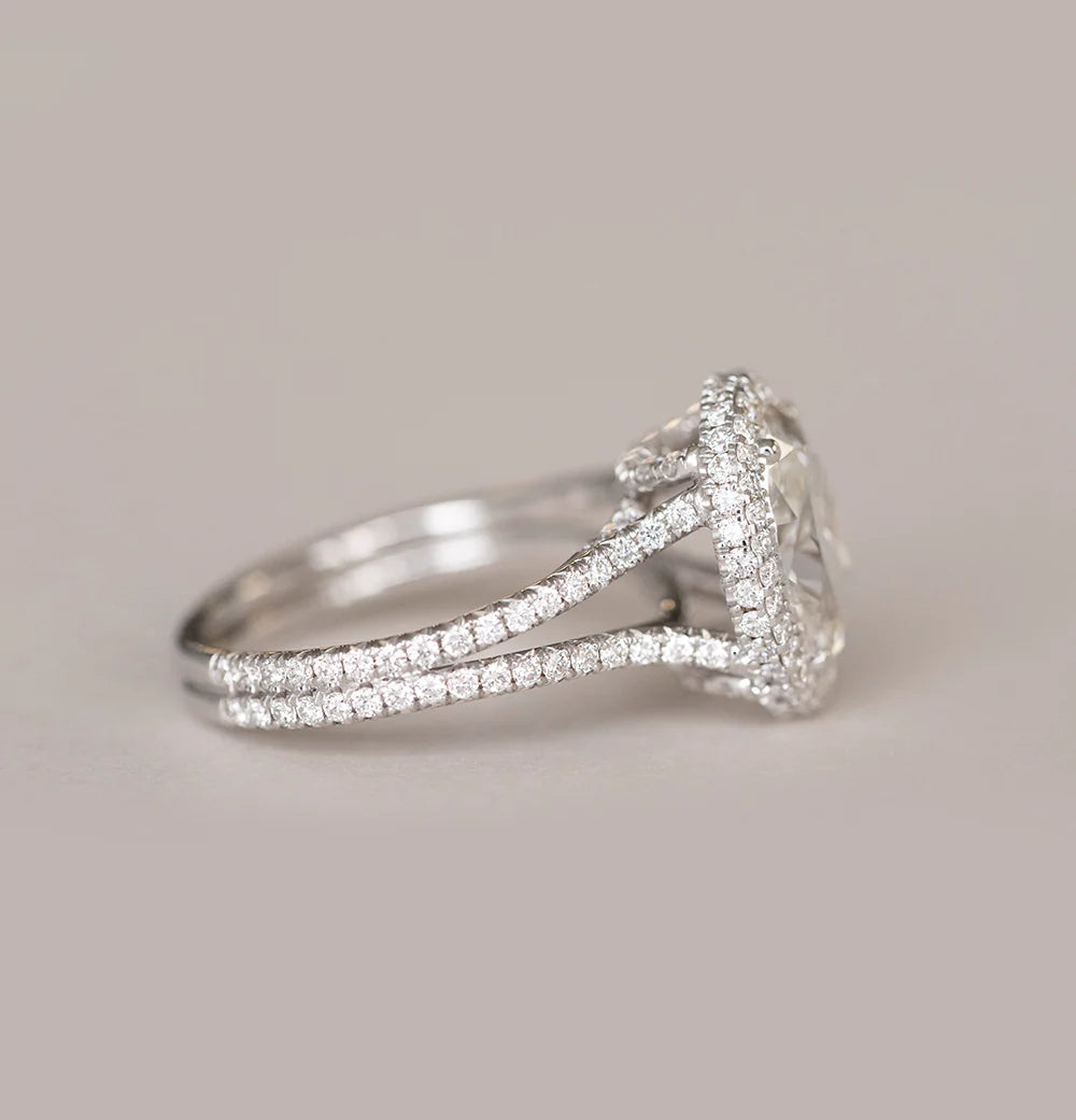 2.29CT Oval Moissanite Halo Split Shank Style Engagement Ring