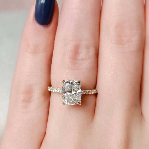 2.50CT Cushion Moissanite Hidden Halo Pave Setting Engagement Ring