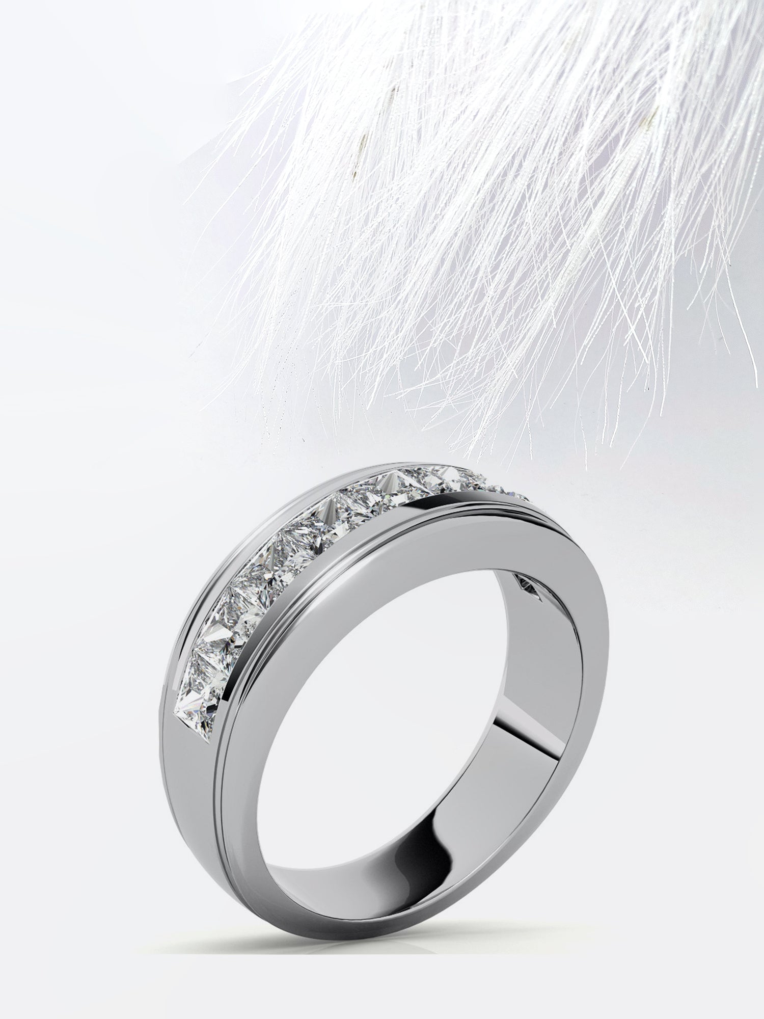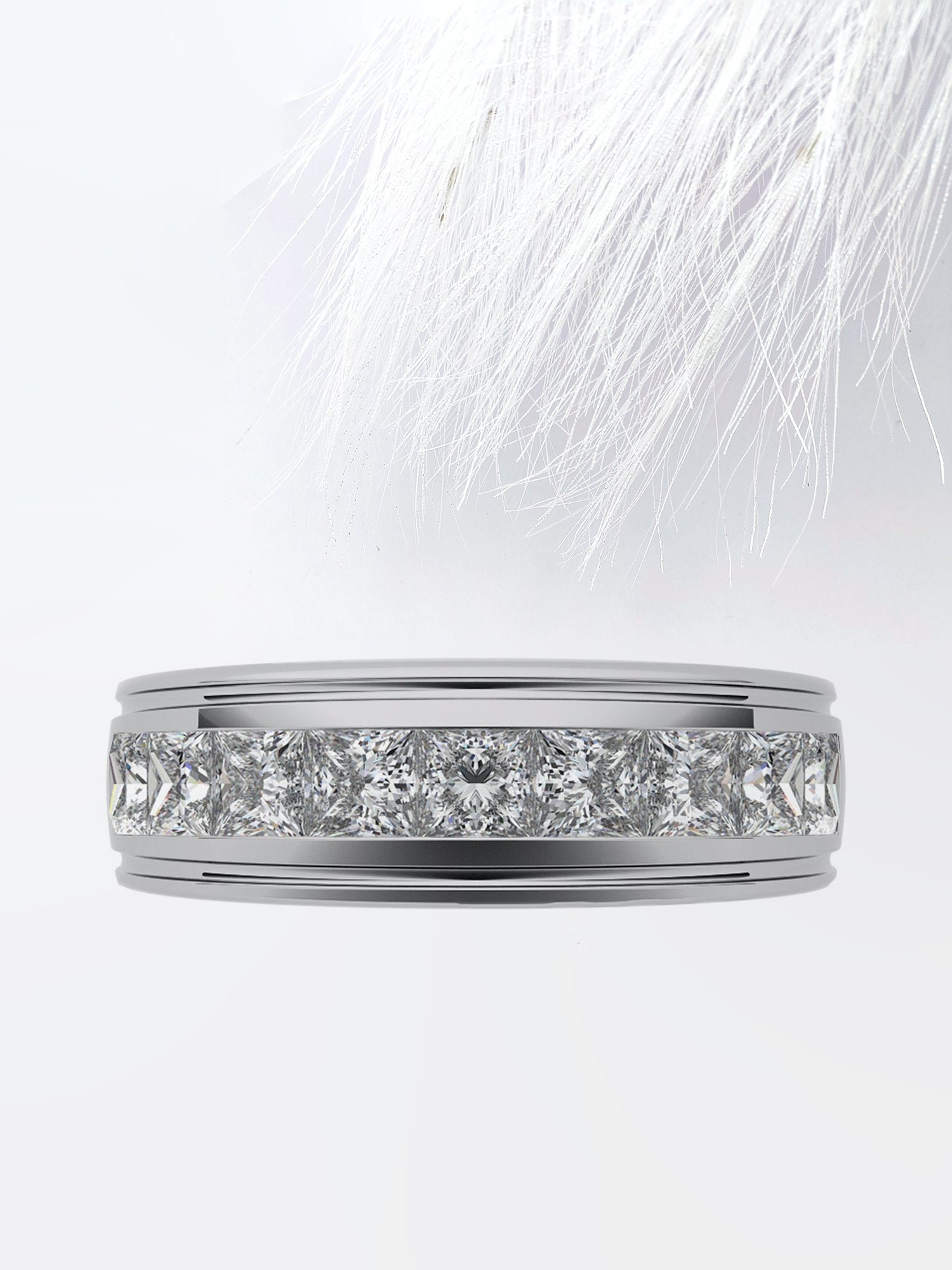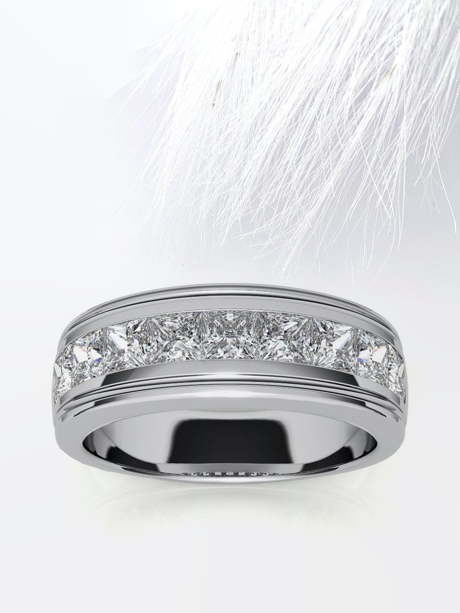2.5CT Princess Cut Channel Set Men's Moissanite Wedding Band