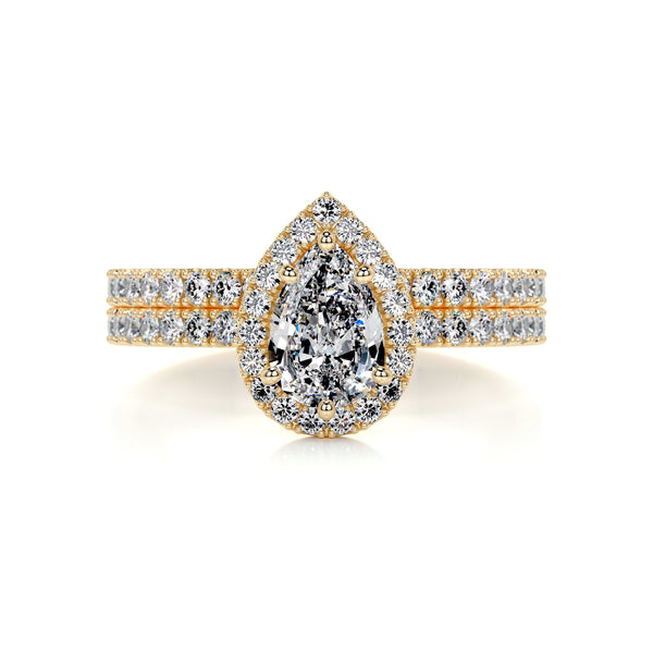 2.65 Carat Pear Halo Moissanite Bridal Wedding ring set