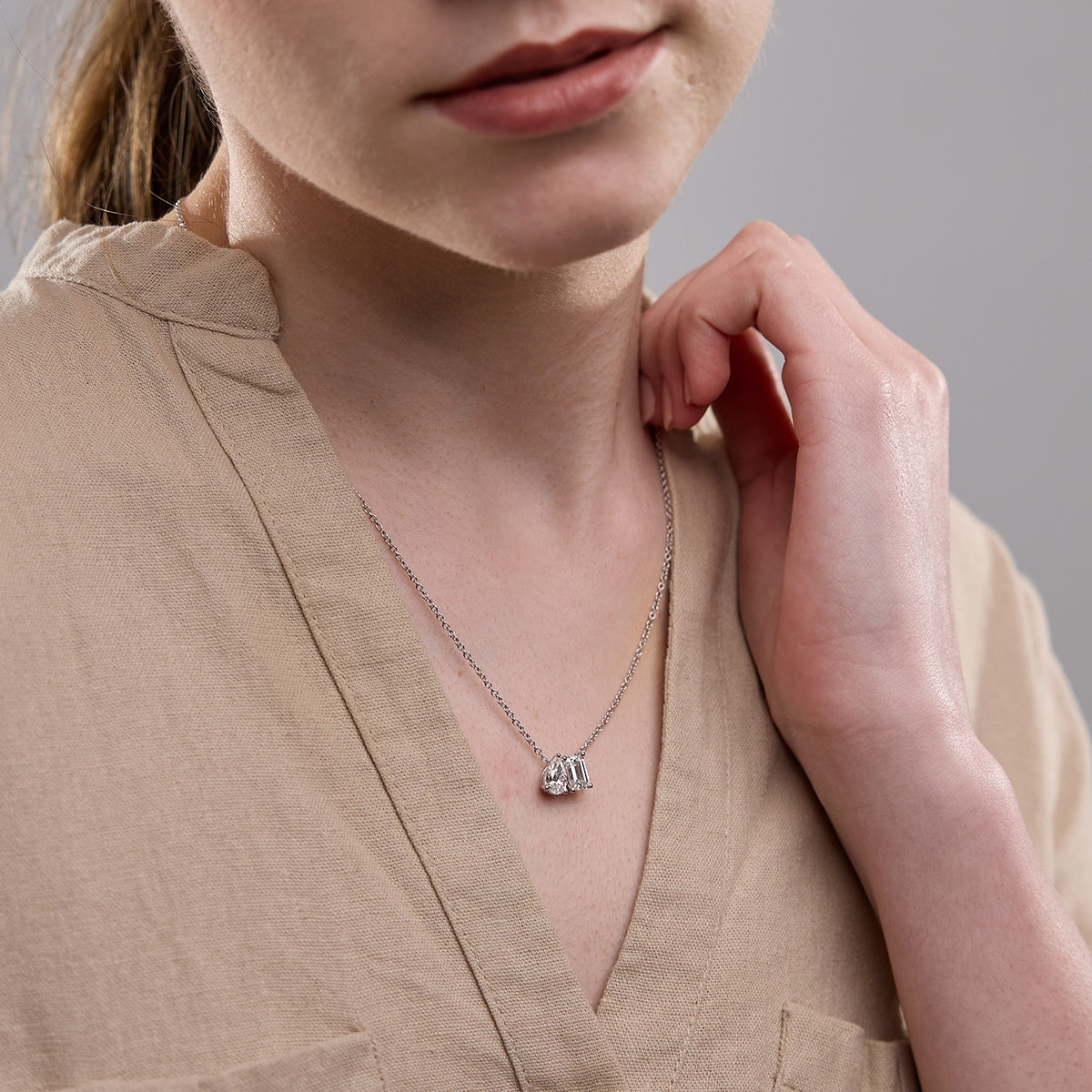 2.75 TCW Emerald & Round Moissanite Diamond Two Stone Necklace