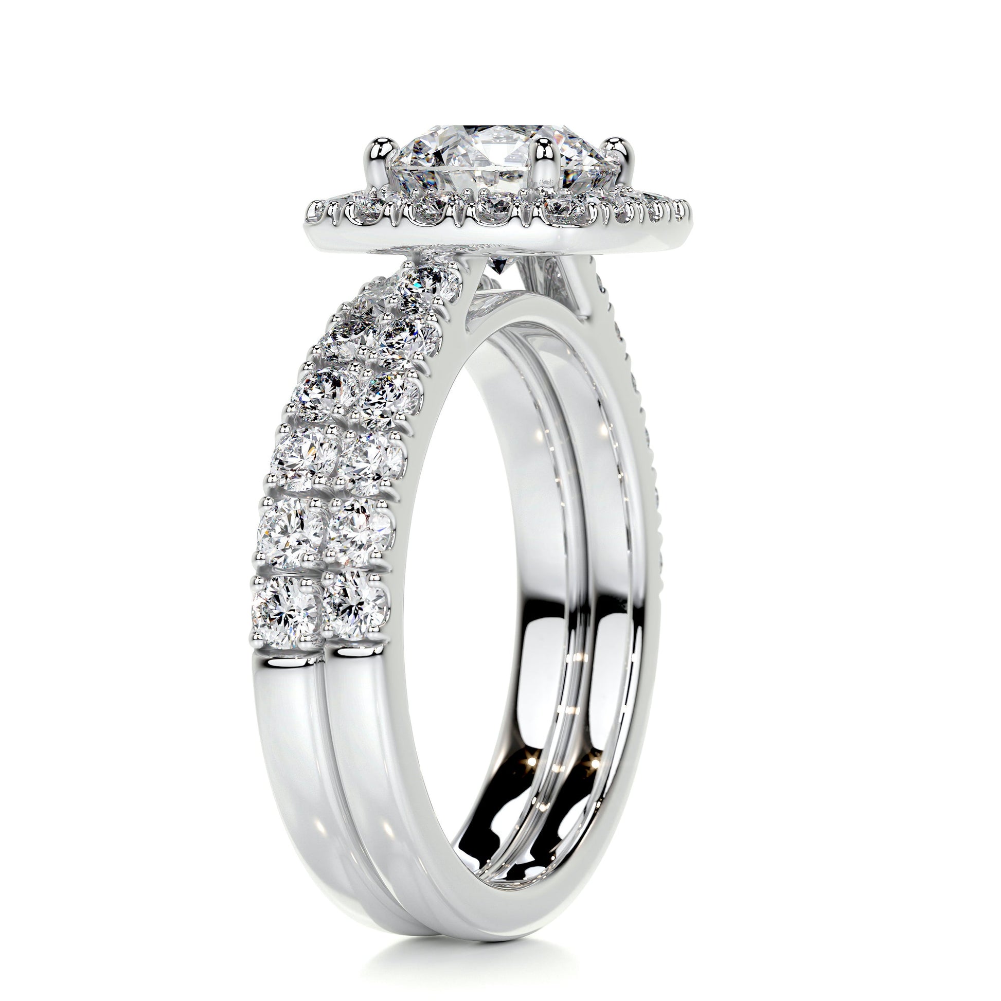 2.85 Carat Round Halo Moissanite Bridal Wedding ring set