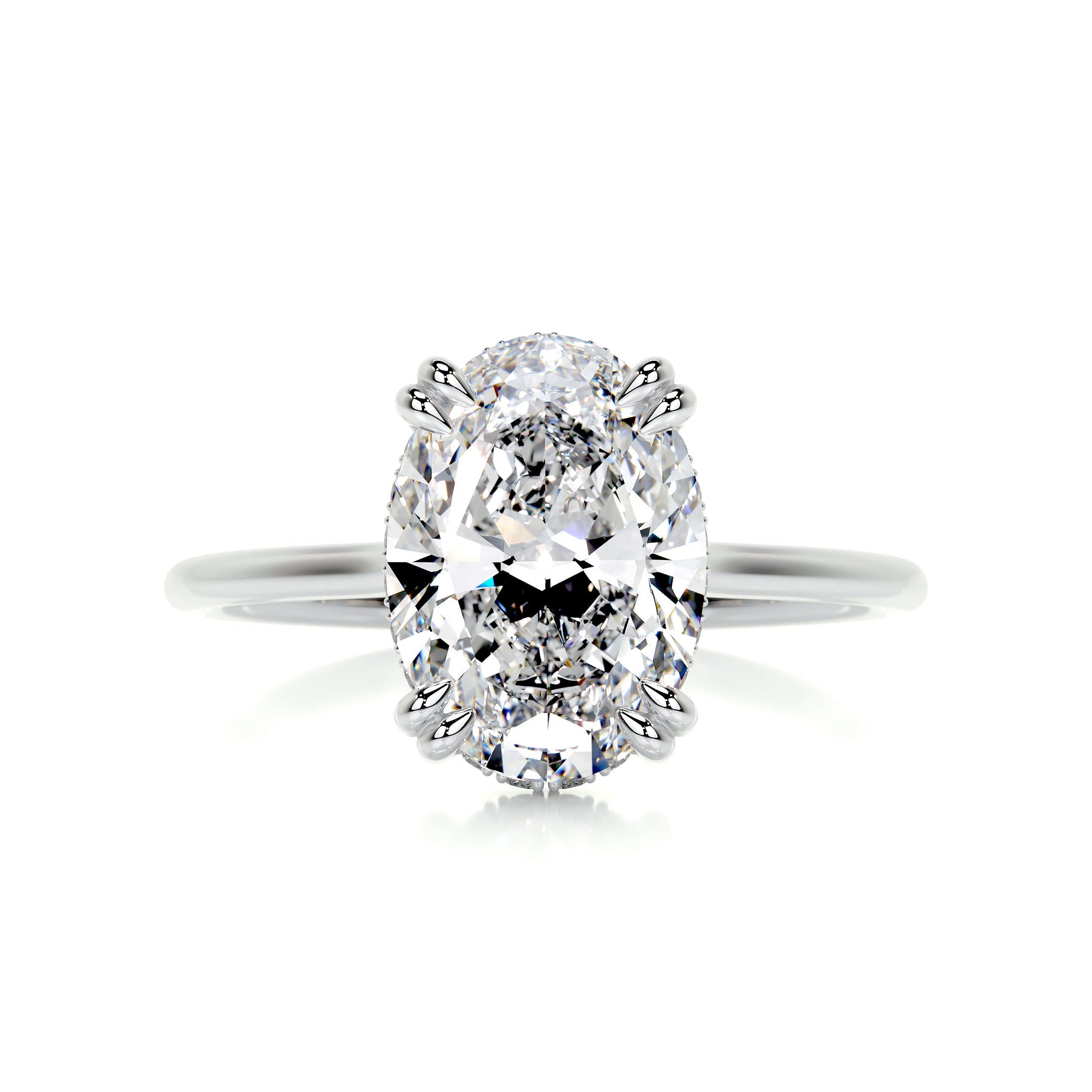 2.95 Carat Oval Hidden Halo Dual Prong Moissanite Engagement Ring