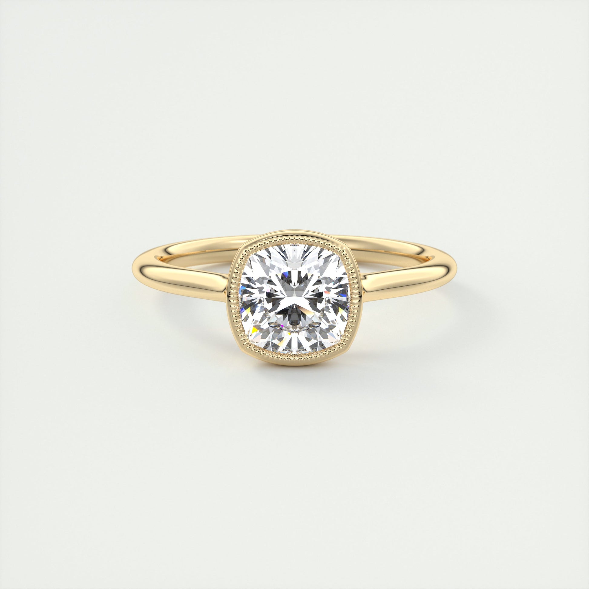 2CT Cushion Cut Moissanite Bezel Solitaire Engagement Ring