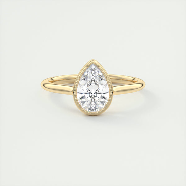 2CT Pear Cut Moissanite Bezel Solitaire Engagement Ring