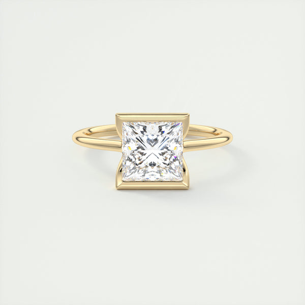 2CT Princess Cut Moissanite Half Bezel Solitaire Engagement Ring