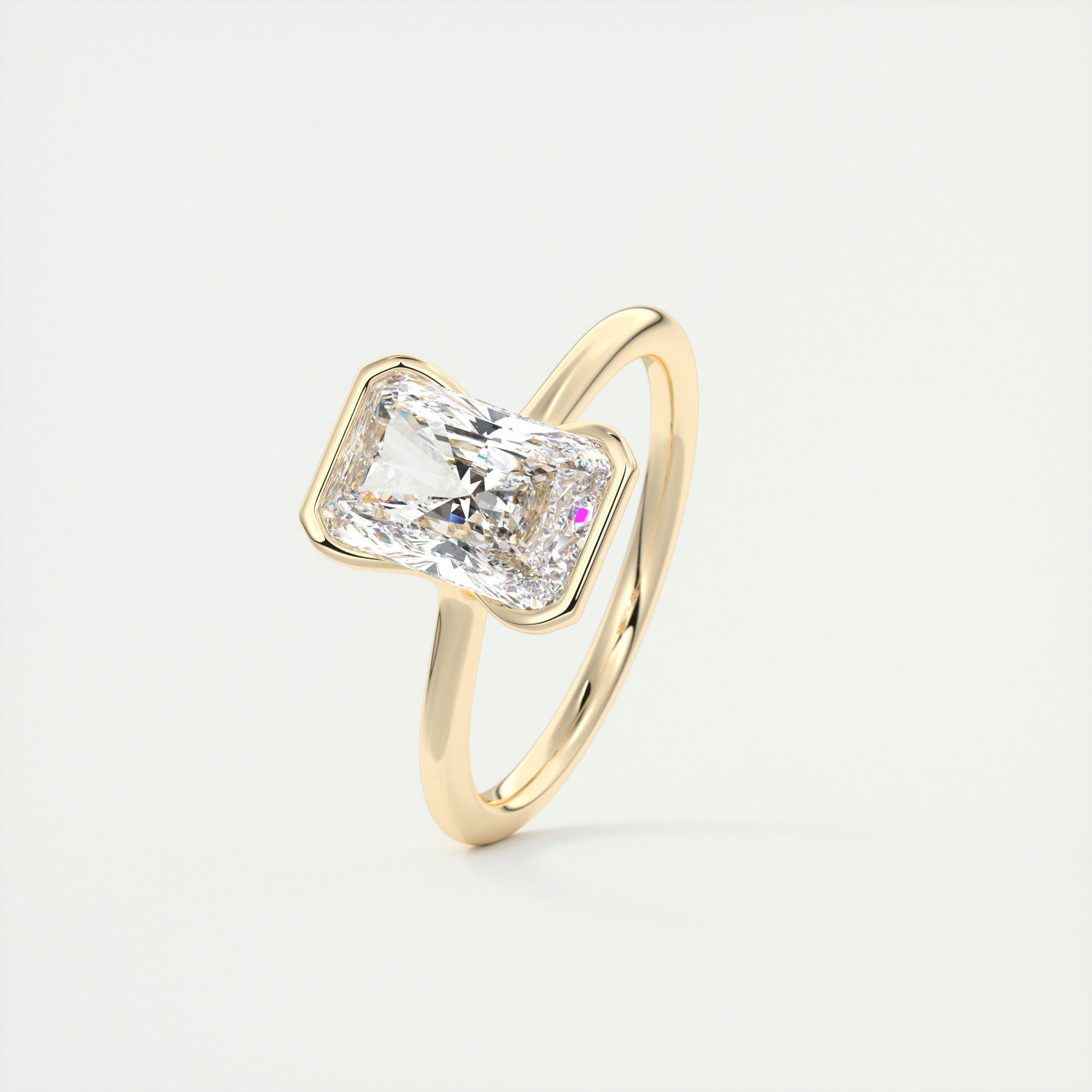 2CT Radiant Cut Moissanite Half Bezel Solitaire Engagement Ring