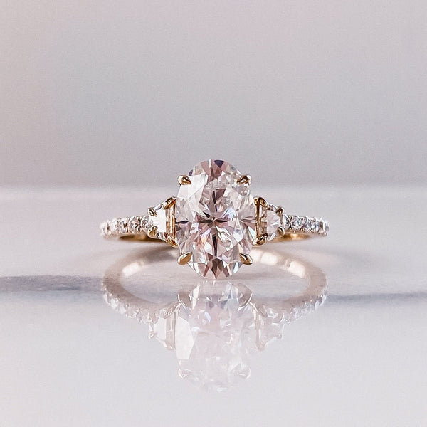 3.0CT Oval Moissanite 3 Stones Pave Setting Engagement Ring