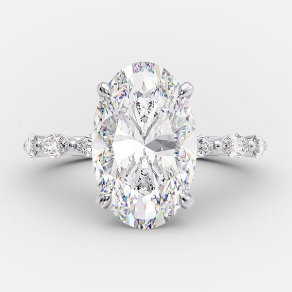 3.5ct Oval Moissanite Solitaire Pave Setting Engagement Ring