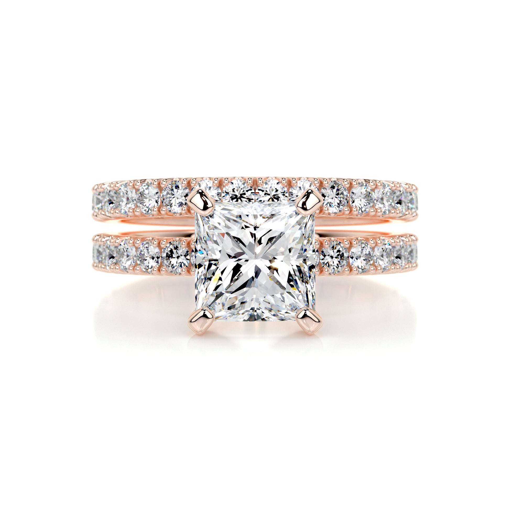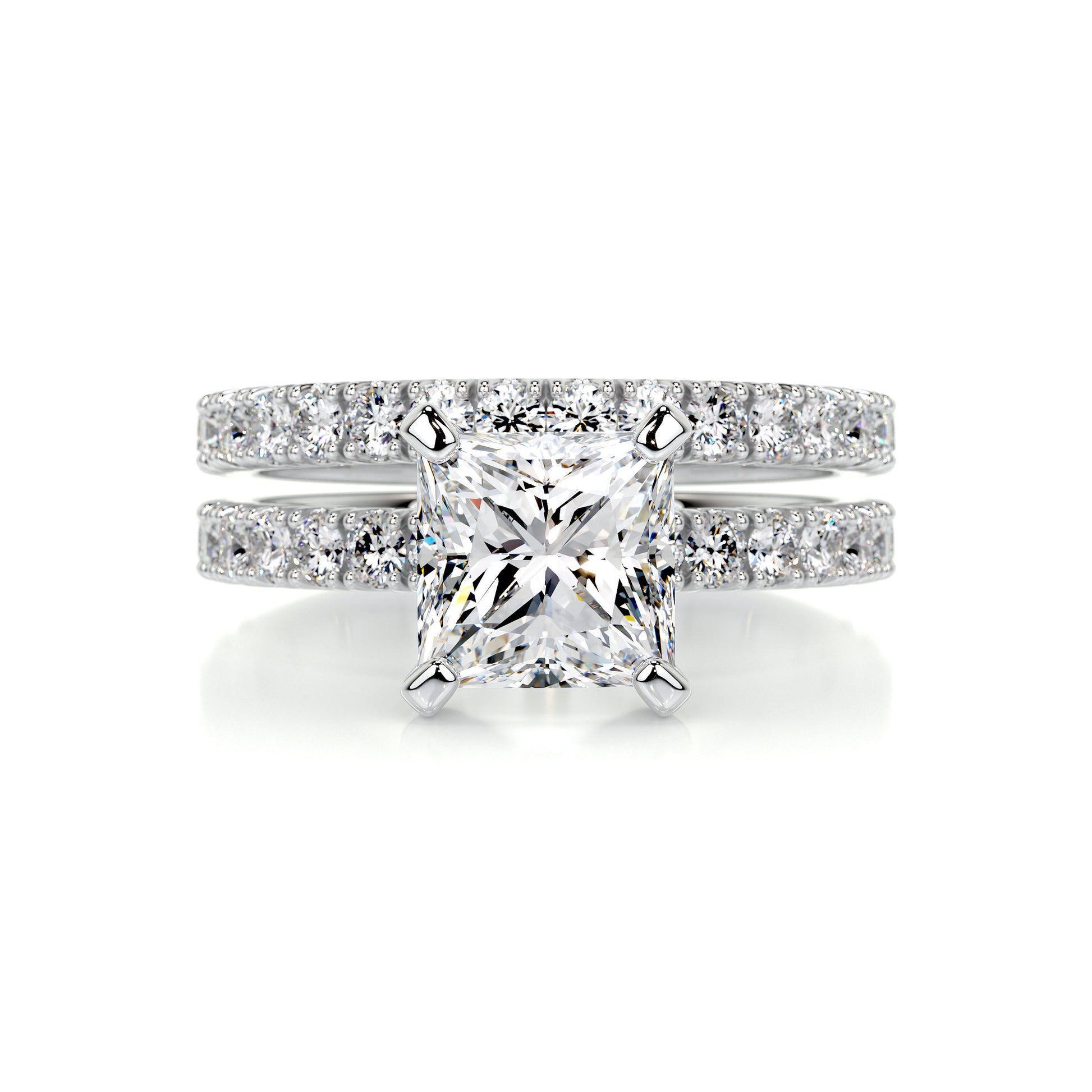 3.10 Carat Princess Pavé Moissanite Bridal ring set