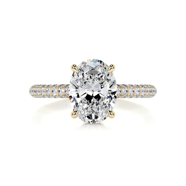 3.22 Ct Oval Moissanite Triple Pave Hidden Halo Engagement Ring