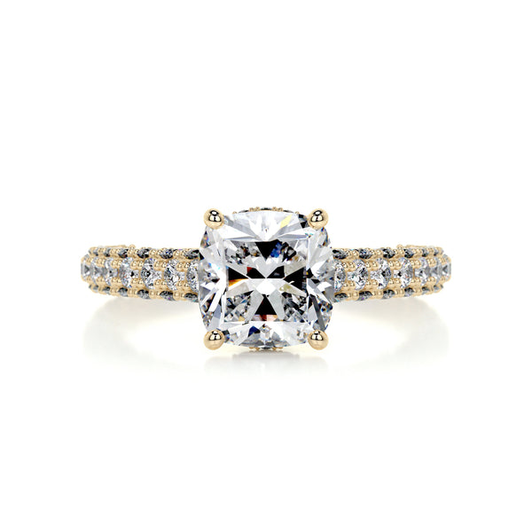 3.34 Ct Cushion Triple Pave Moissanite Engagement Ring