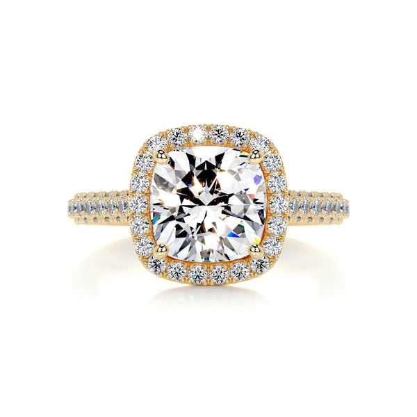 3.40 Ct Cushion Halo Triple Pave Moissanite Engagement Ring