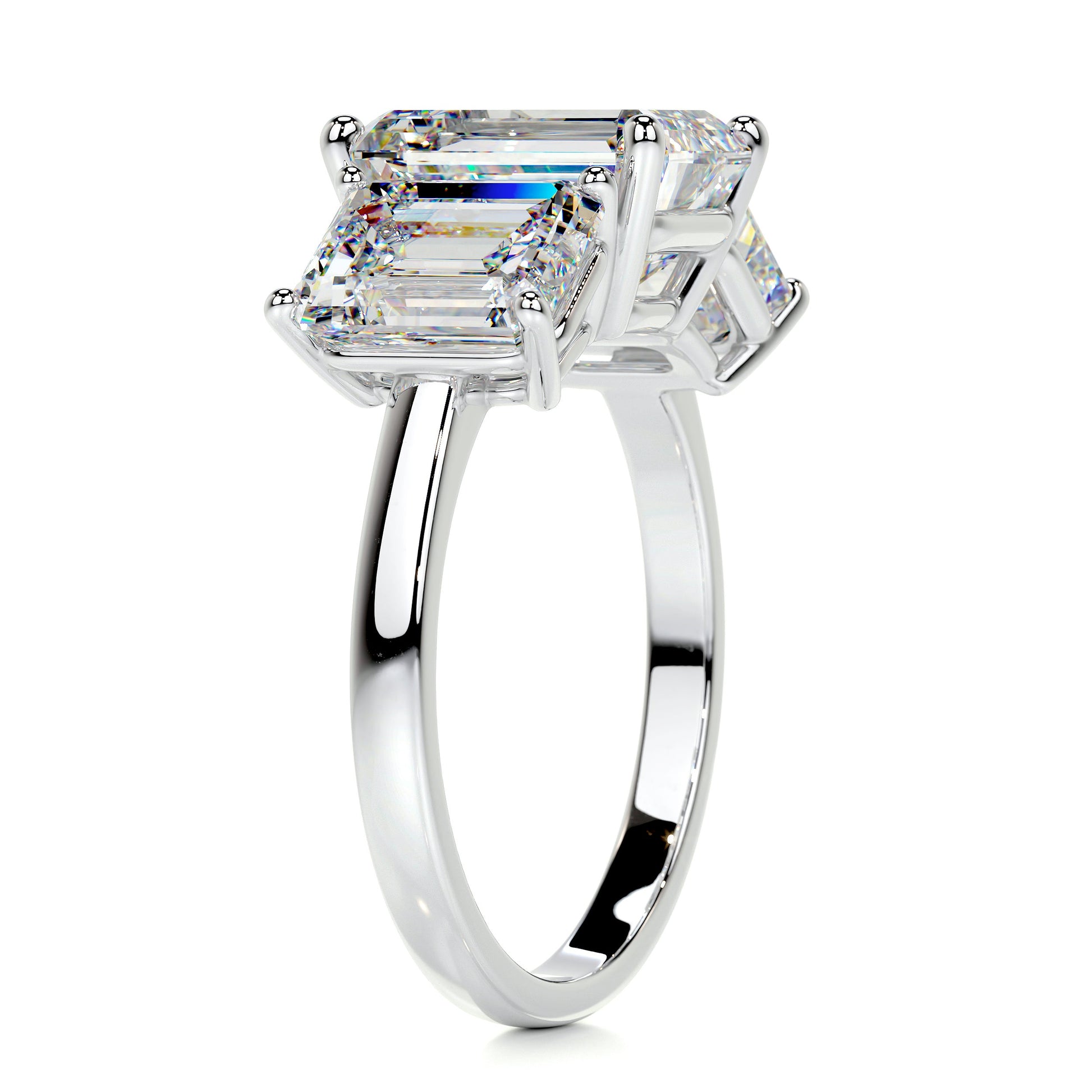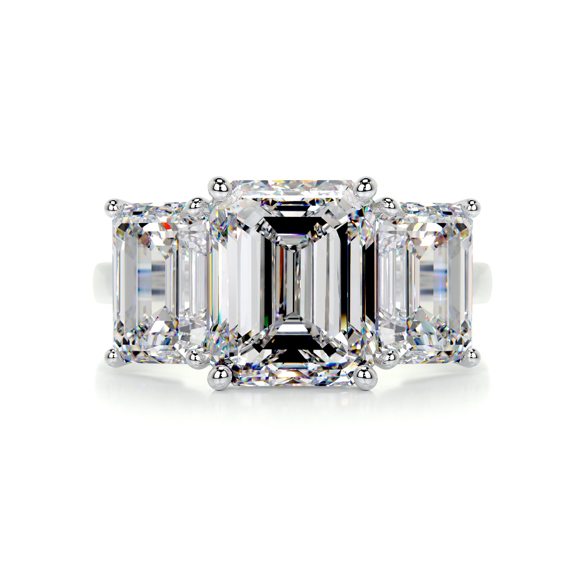 3.7 Carat Emerald Three Stones Moissanite Diamond Engagement Ring