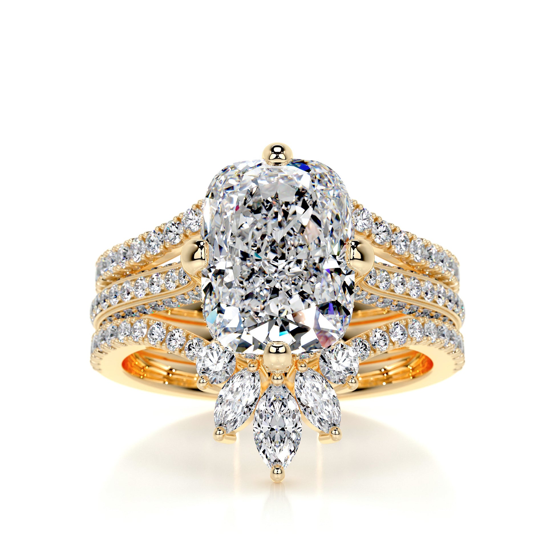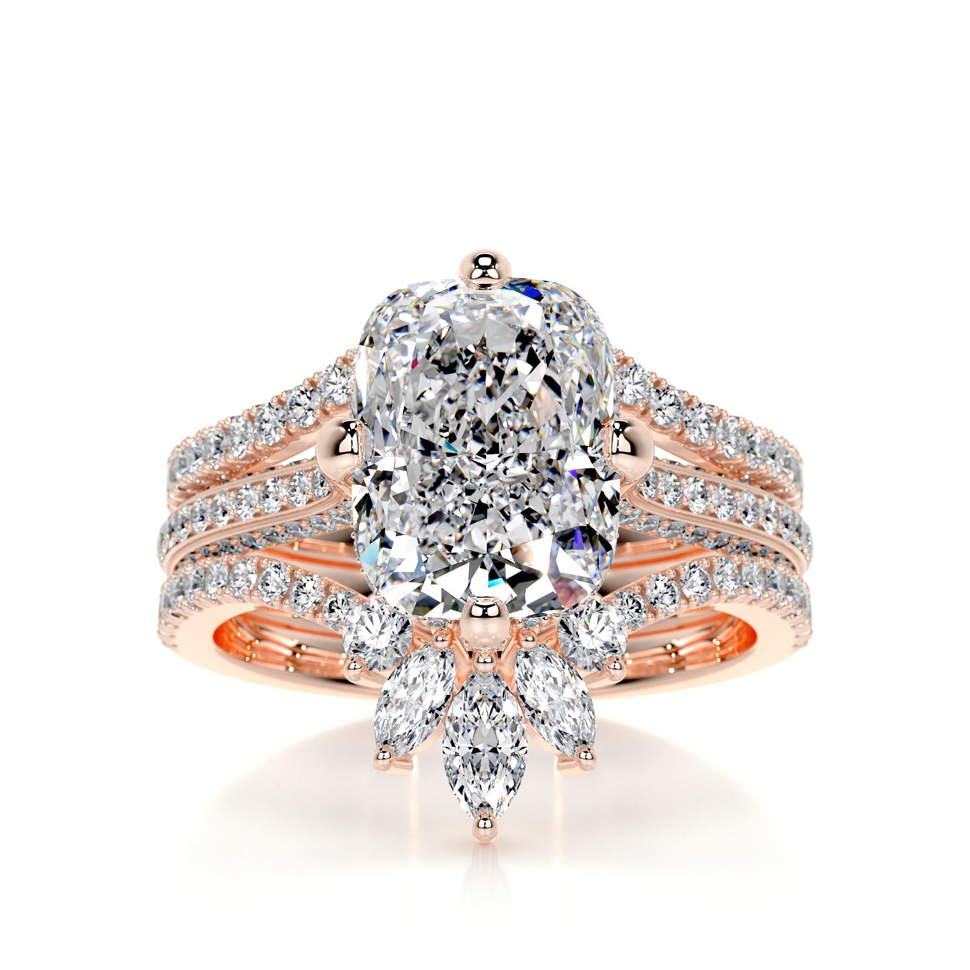 4.0 ct Radiant Cut Moissanite Trinity Cathedral Bridal ring set