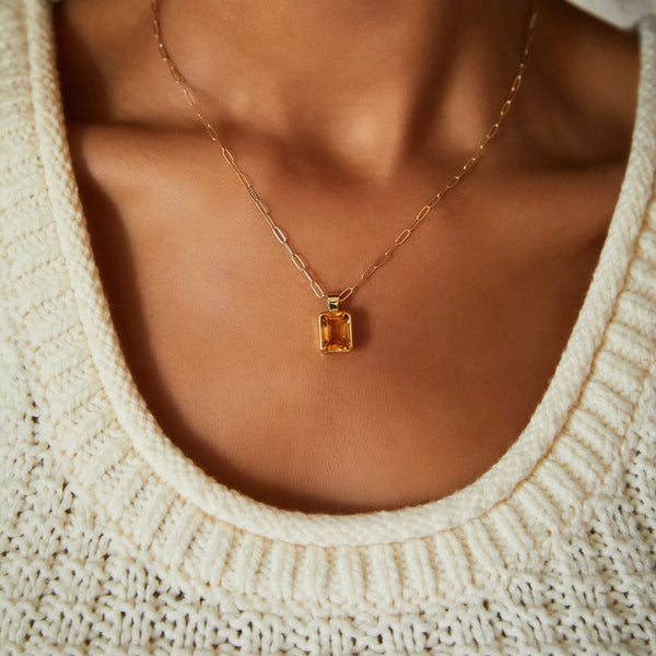 4.0CT Emerald Citrine Diamond November Birthstone Solitaire Necklace