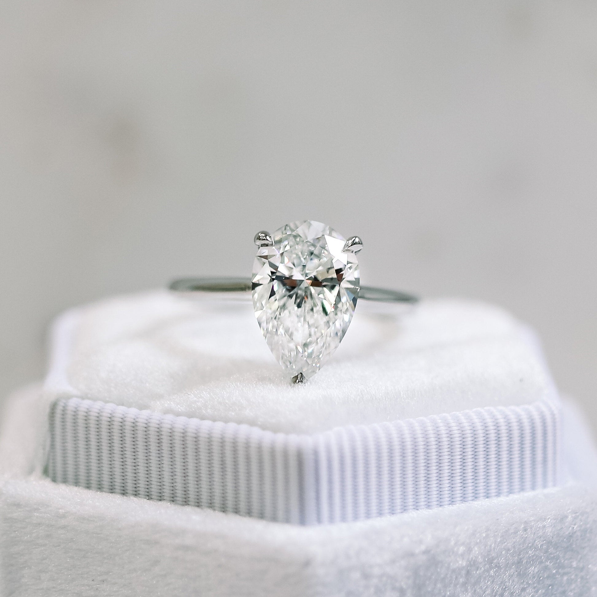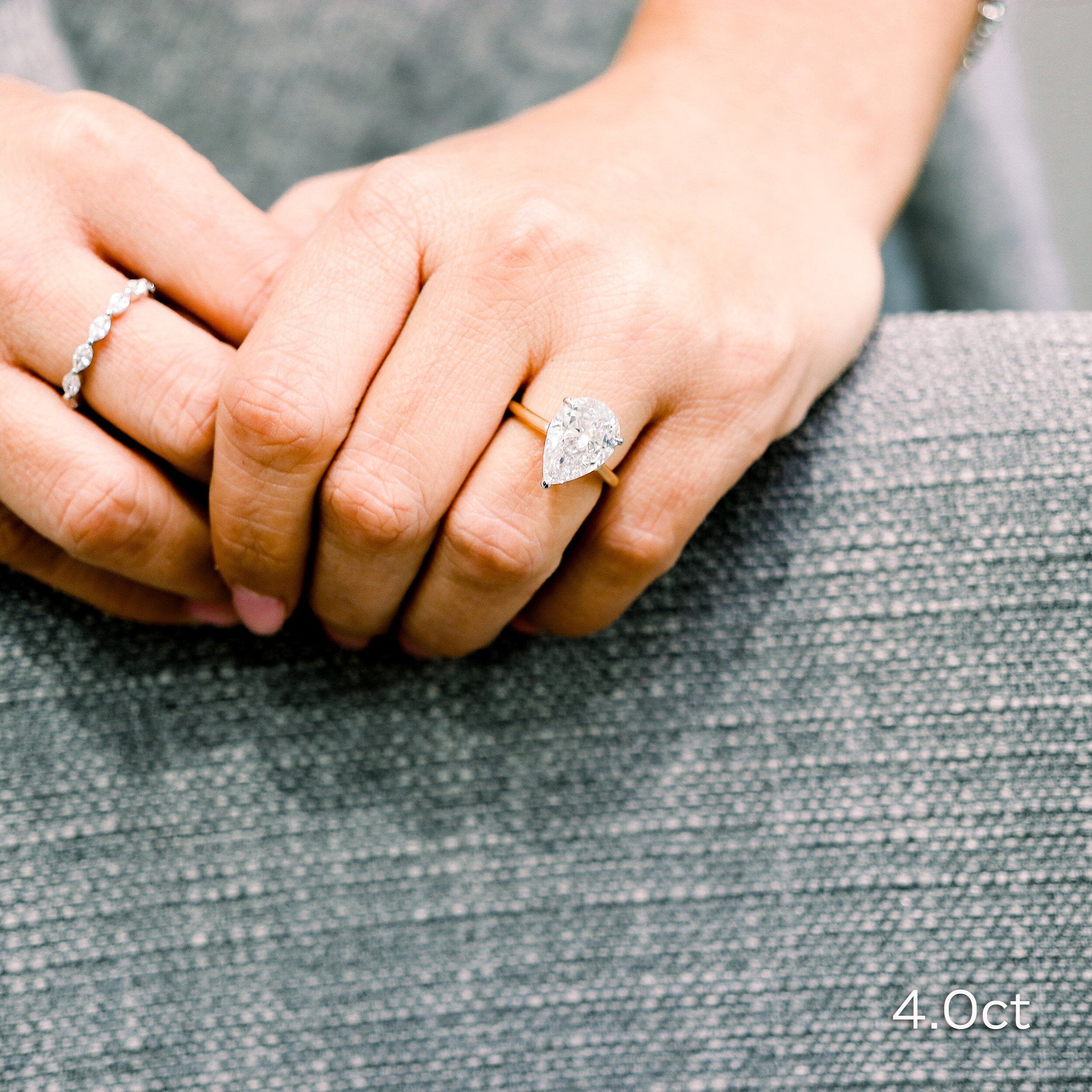 4.0ct Pear Cut Moissanite Solitaire Engagement Ring
