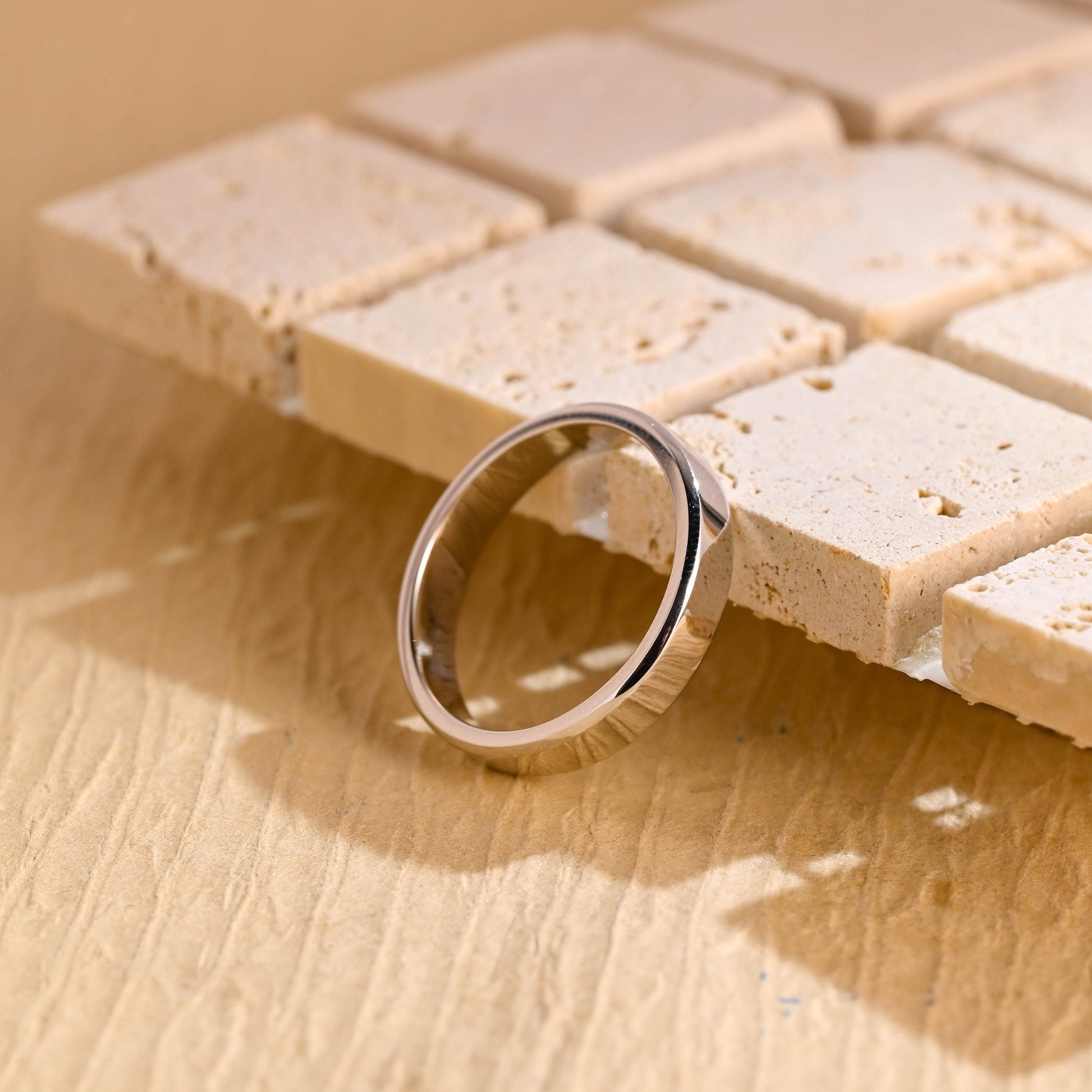 4.3mm Flat Shine Men's Gold Wedding Band, Anniversary Gift For Men