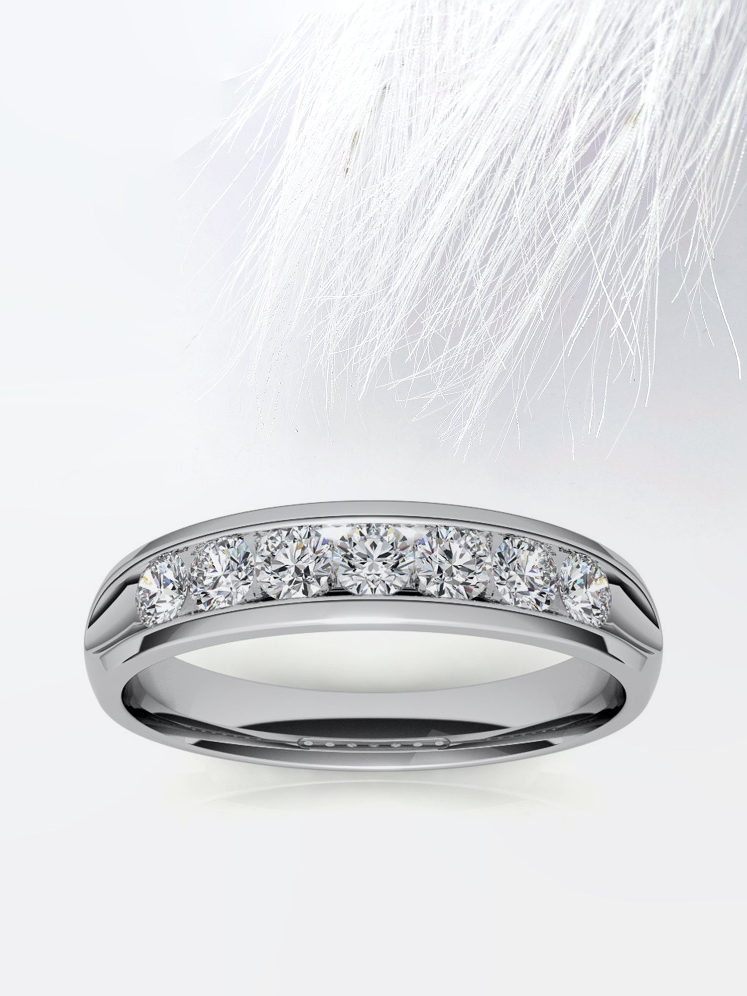 4mm Round Cut Channel Set Seven Stone Diamond Men's Wedding Band