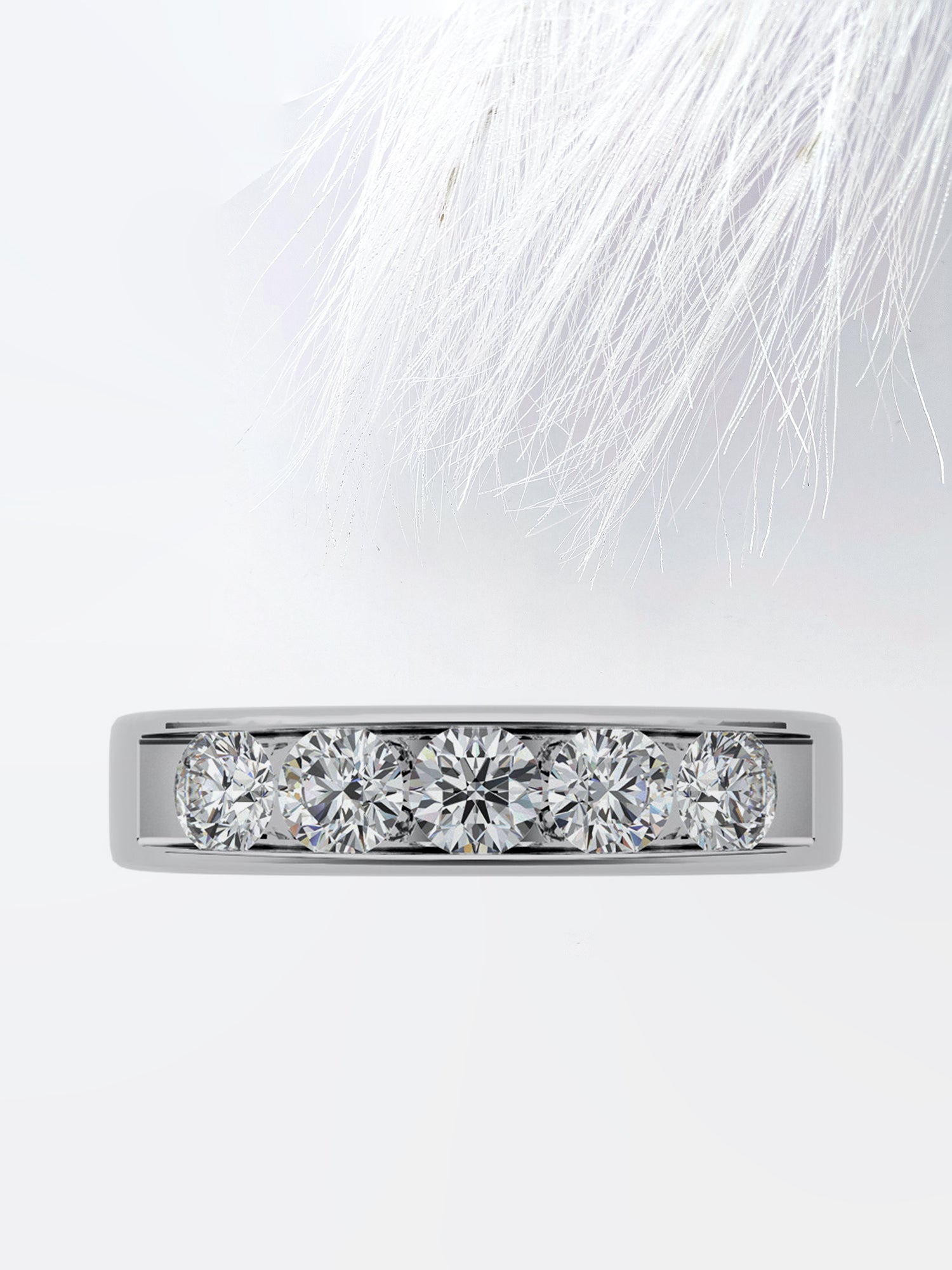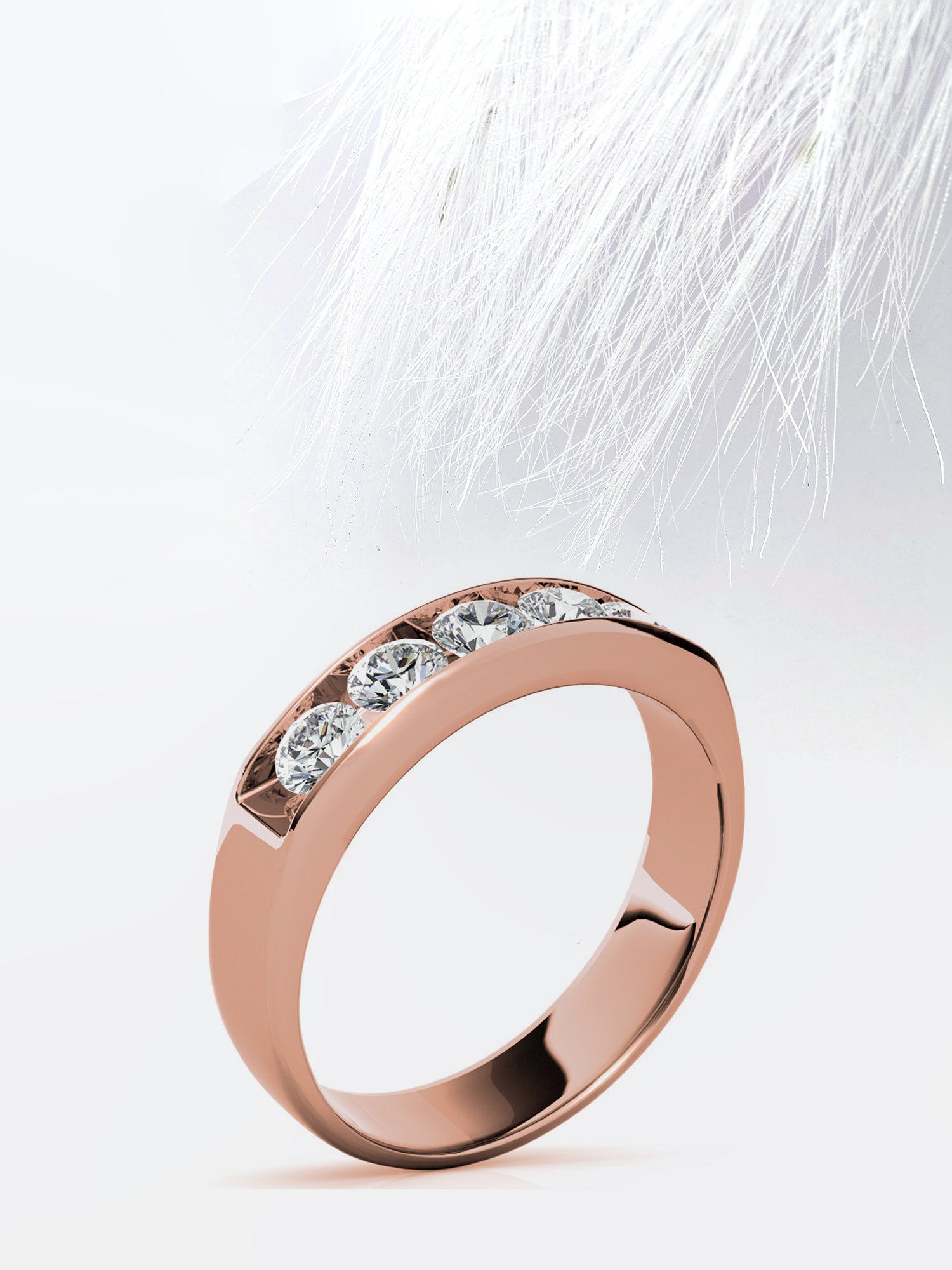 4mm Round Cut Five Stone Moissanite Men's Wedding Band in Rose Gold