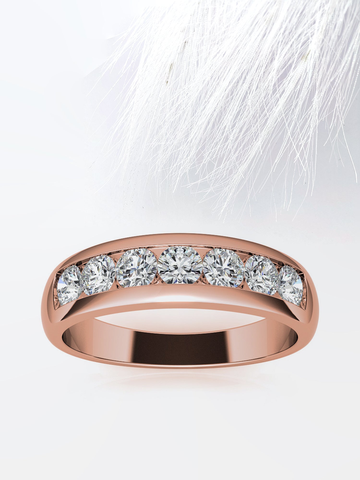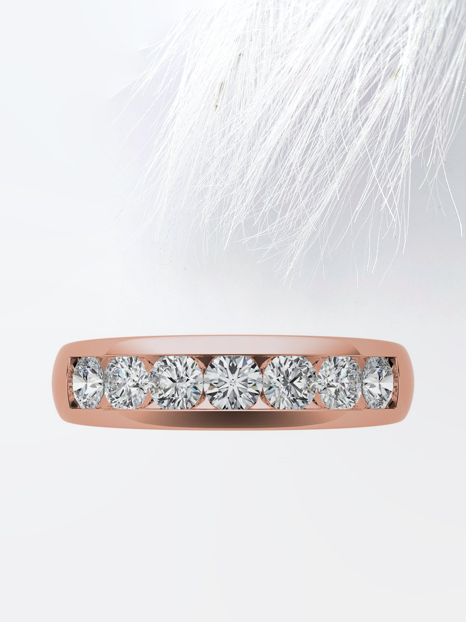 6mm Round Cut Seven Stone Men's Wedding Band in Rose Gold