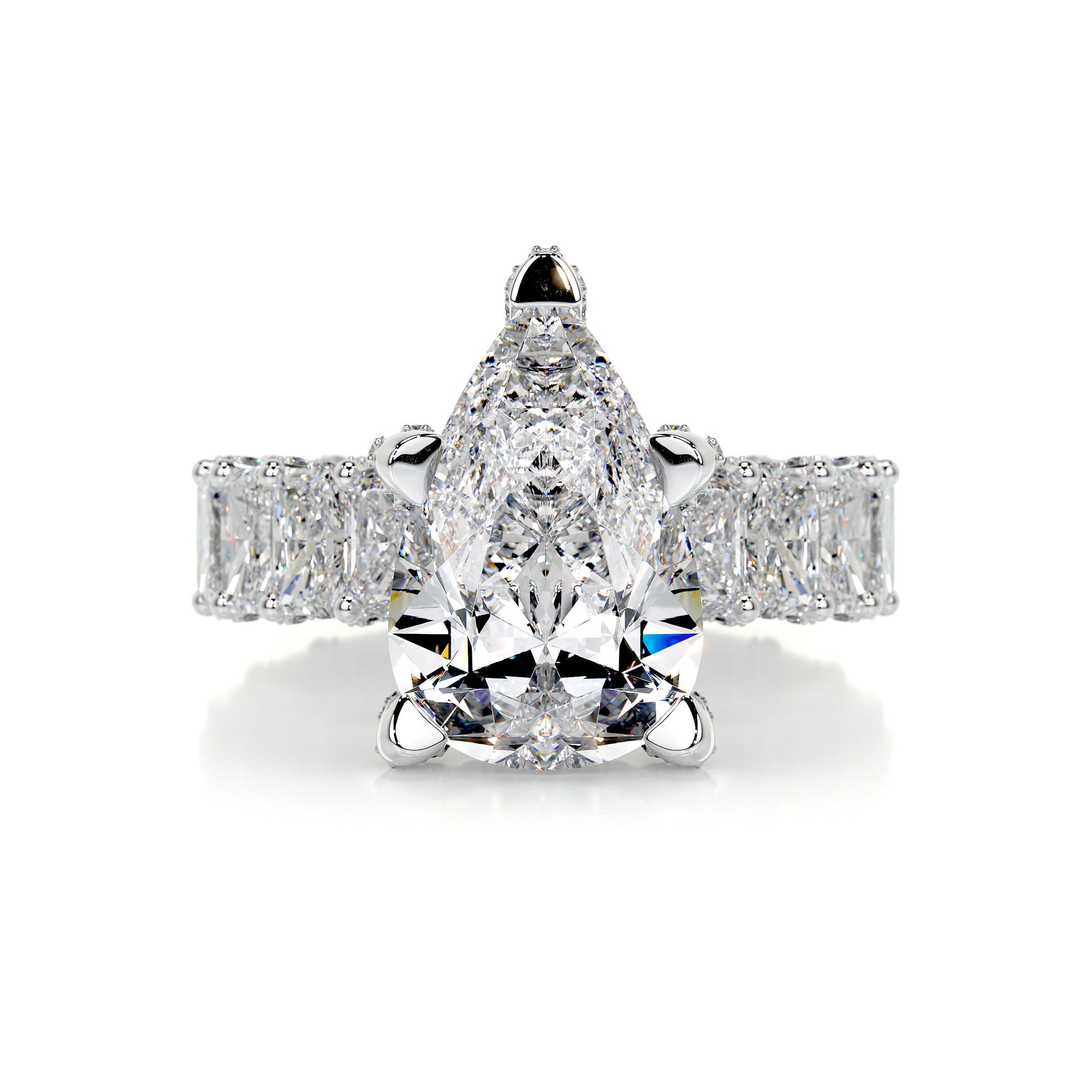 7.0 Carat Pear Hidden Halo Moissanite Engagement Ring