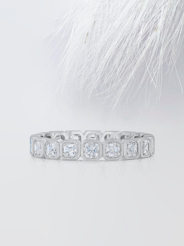 Asscher Cut Moissanite Bezel Set Eternity Diamond Wedding Band