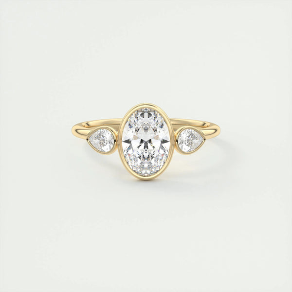 2.5 Ct Oval Pear Three Stone Bezel Moissanite Diamond Engagement Ring