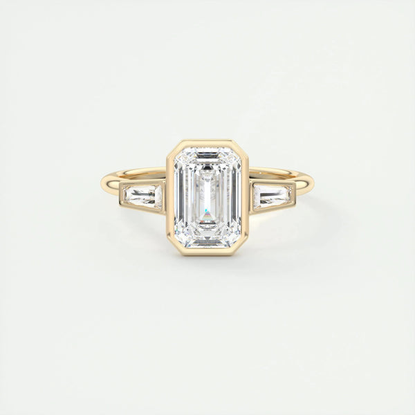 2.5 Ct Emerald Three Stone Bezel Moissanite Engagement Ring