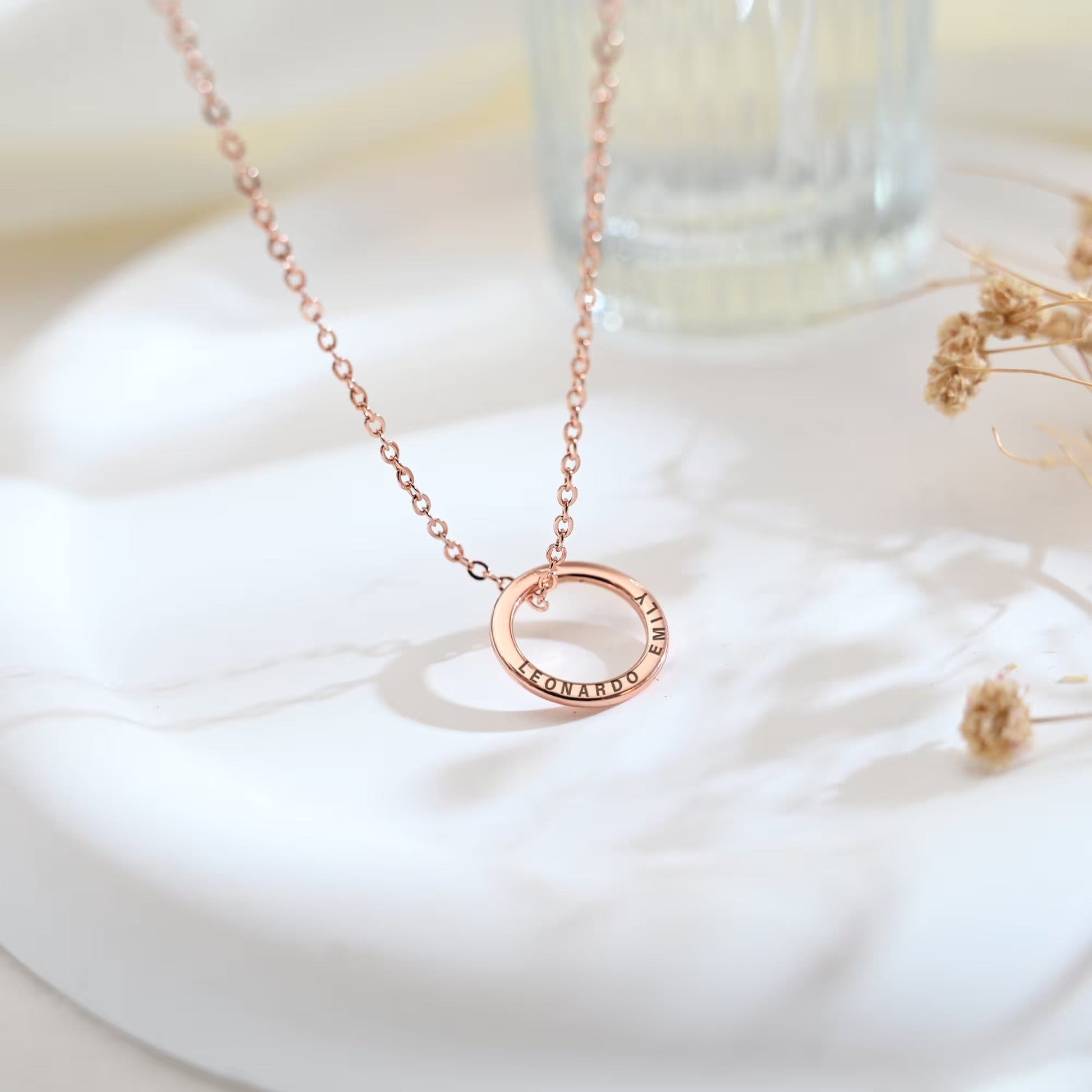 ✥ Capture personalized elegance with our Custom Engraved Circle Name Pendant Necklace for Her. This necklace features a stylish circle pendant crafted from high-quality materials, personalized with a name or meaningful word of your choice. Perfect for celebrating a special bond or milestone, it adds a touch of sentimentality to any attire. Crafted with meticulous attention to detail for durability and lasting shine, it's an ideal gift choice that symbolizes individuality and connection. A cherished addition to her jewelry collection, reflecting timeless beauty and personal significance.