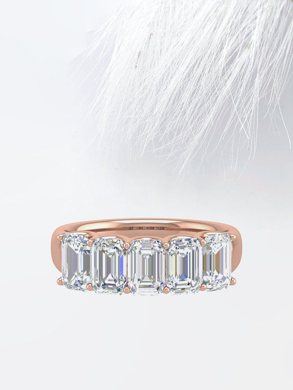 Emerald GH-VVS Lab Grown Diamond Five Stone Wedding Band