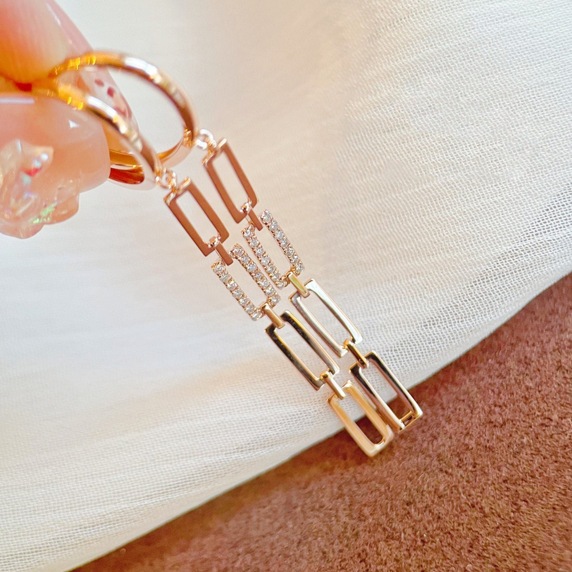 Diamond Rectangle Chain Link Threader Earrings for Her
