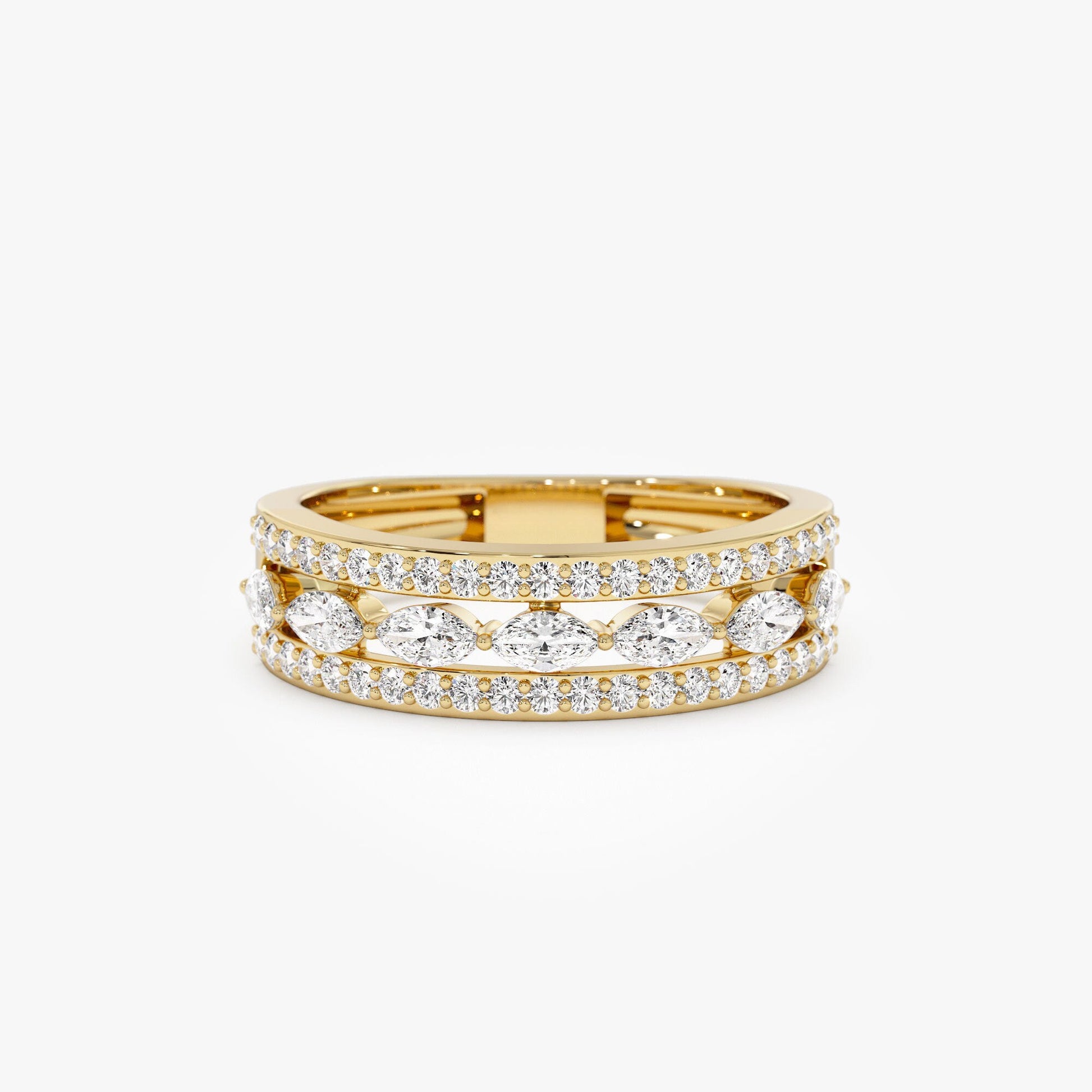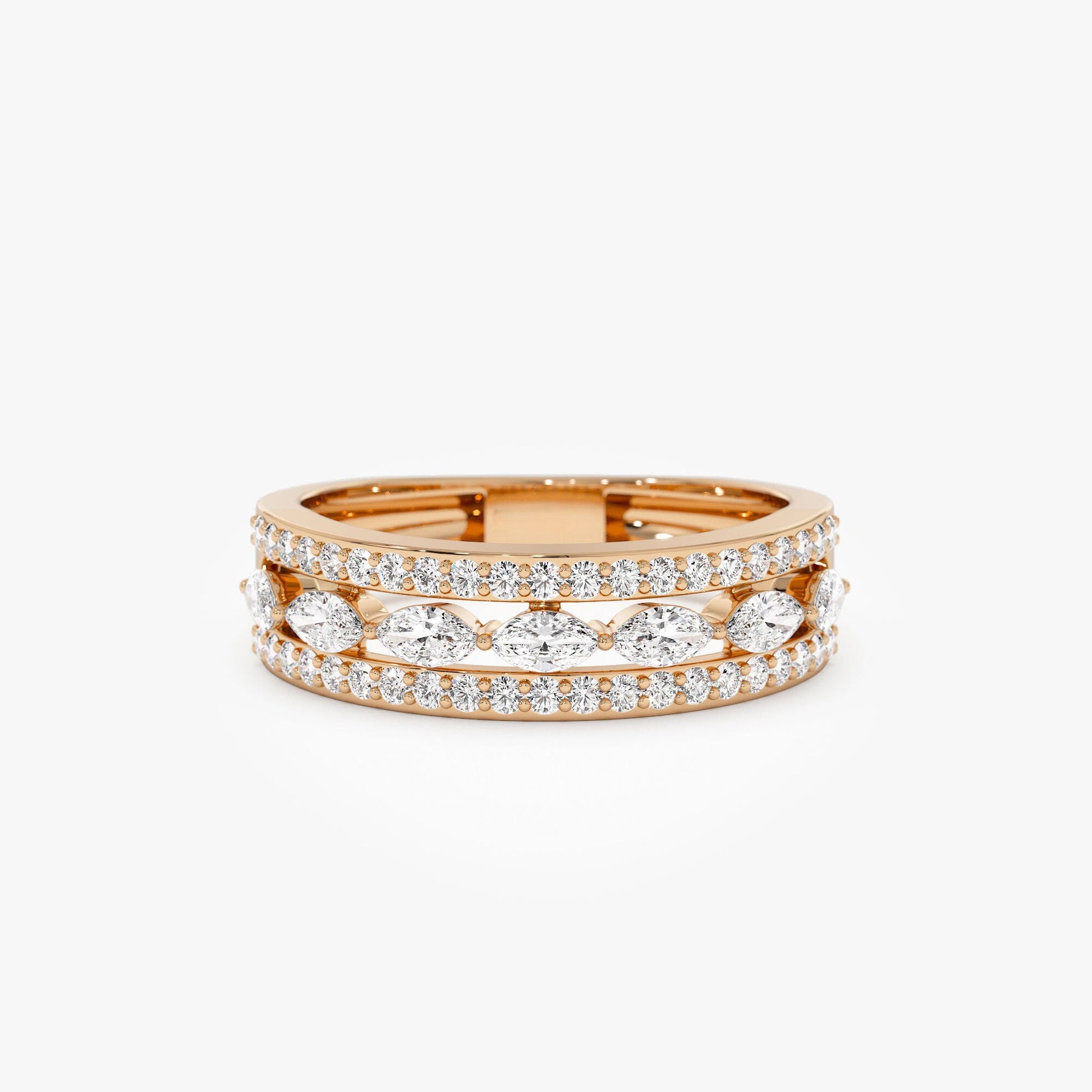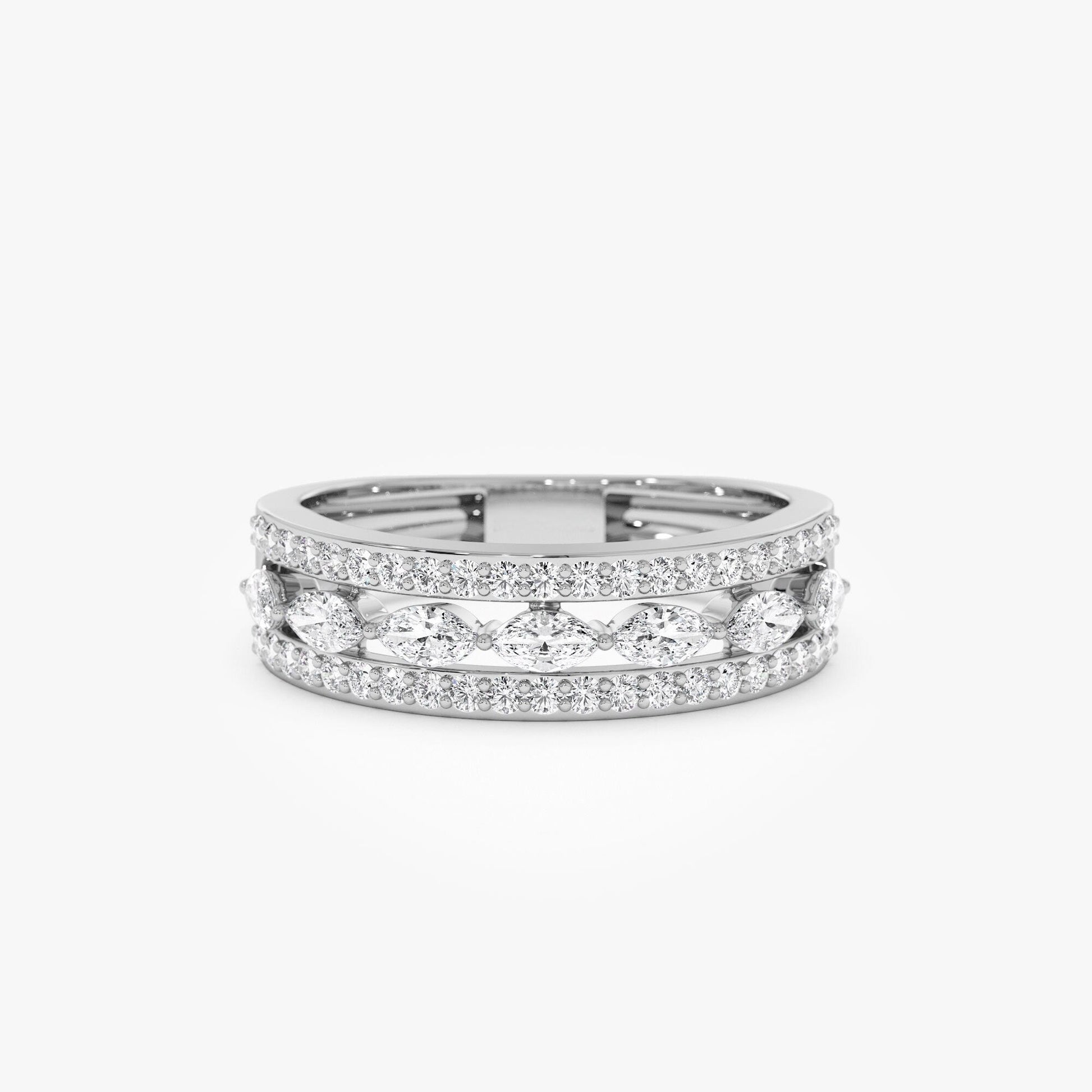 Double Row Floating Marquise and Round Wedding Band