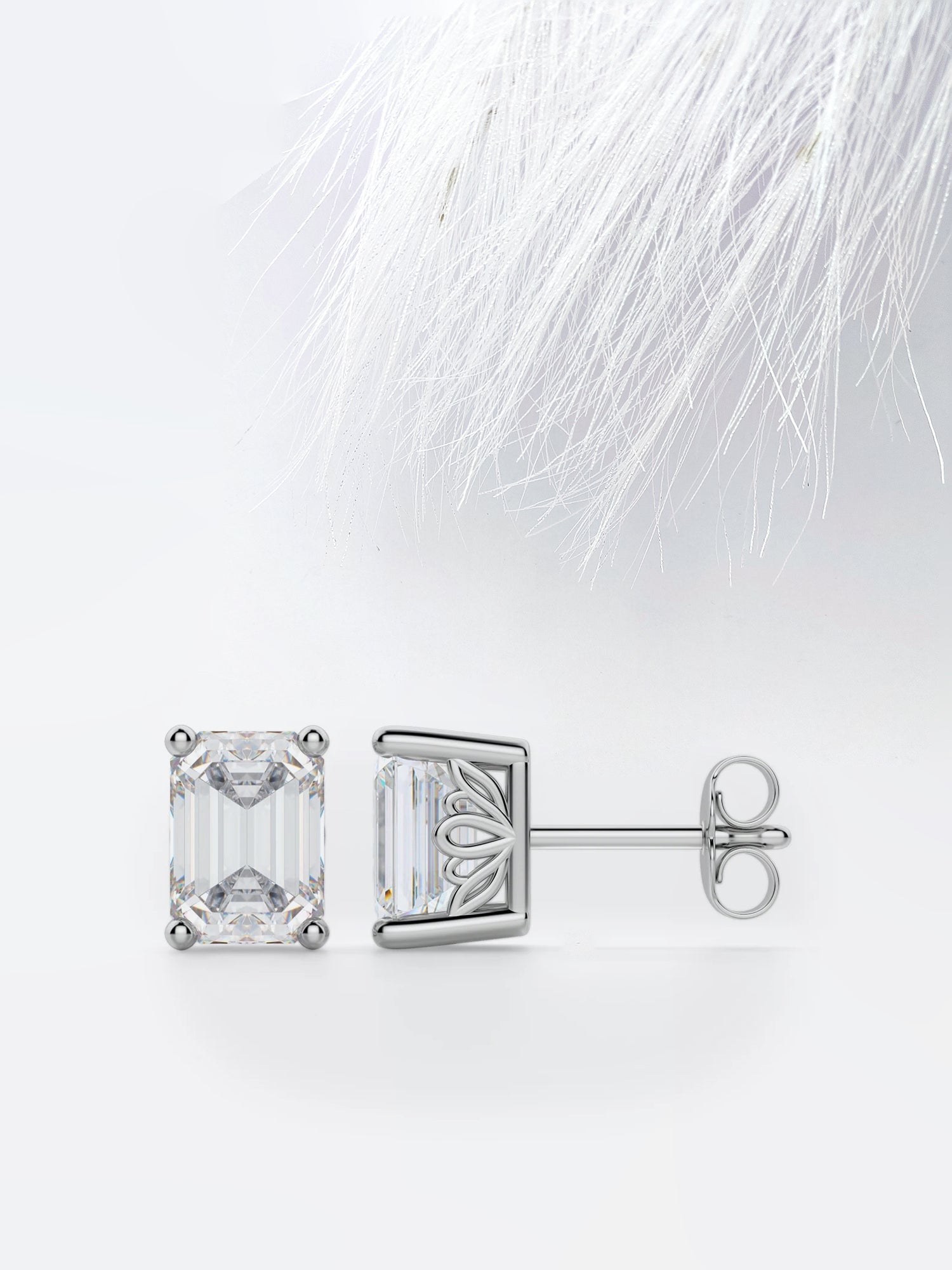 Emerald Cut Moissanite Diamond Studs Earrings for Women
